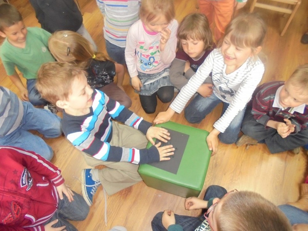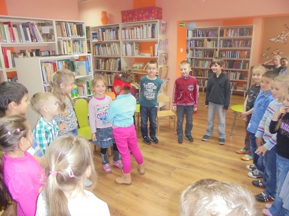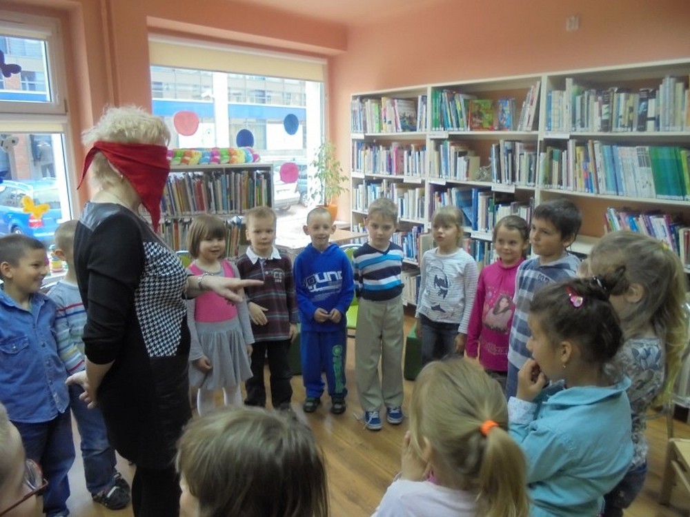 Dziś na spotkanie z ciekawą książką przybyły 6-latki ze Szkoły Podstawowej nr 6. Dzieci bardzo aktywnie włączyły się w zajęcia i żywo reagowały na spotkaniu. Przedszkolaki zapoznały się z „Czarną książką kolorów" i czasopismem „Pochodnia" napisaną dla osób niewidomych pismem braille'a. Dzieci próbowały rozszyfrować znaki, jednak było to bardzo trudne zadanie. Na zakończenie spotkania dzieci wykonały własną książkę kolorów.