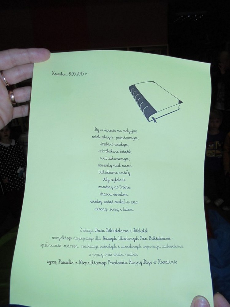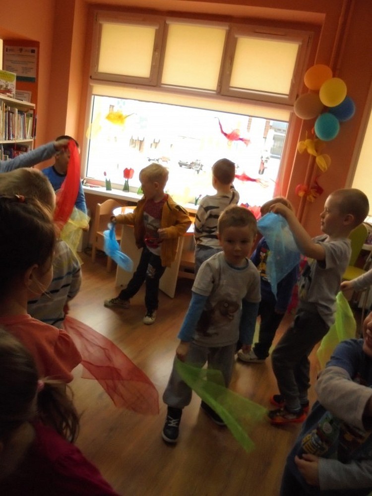 Rozpoczęliśmy XII Ogólnopolski Tydzień Bibliotek. W dniach od 8-15 maja przygotowaliśmy w naszej bibliotece cykl spotkań dla dzieci. Przedszkolaki przygotowały miłą niespodziankę z okazji naszego święta, wręczyły nam życzenia i zaśpiewały 100 lat. Dzisiejsza grupa 4-5 latków z Przedszkola Happy Days przeniosła się do kolorowej krainy wyobraźni. Nasze maluchy mają bardzo bogatą wyobraźnię wcielając się w różne postaci, jak Czerwony Kapturek, pirat, motylek czy Batman.