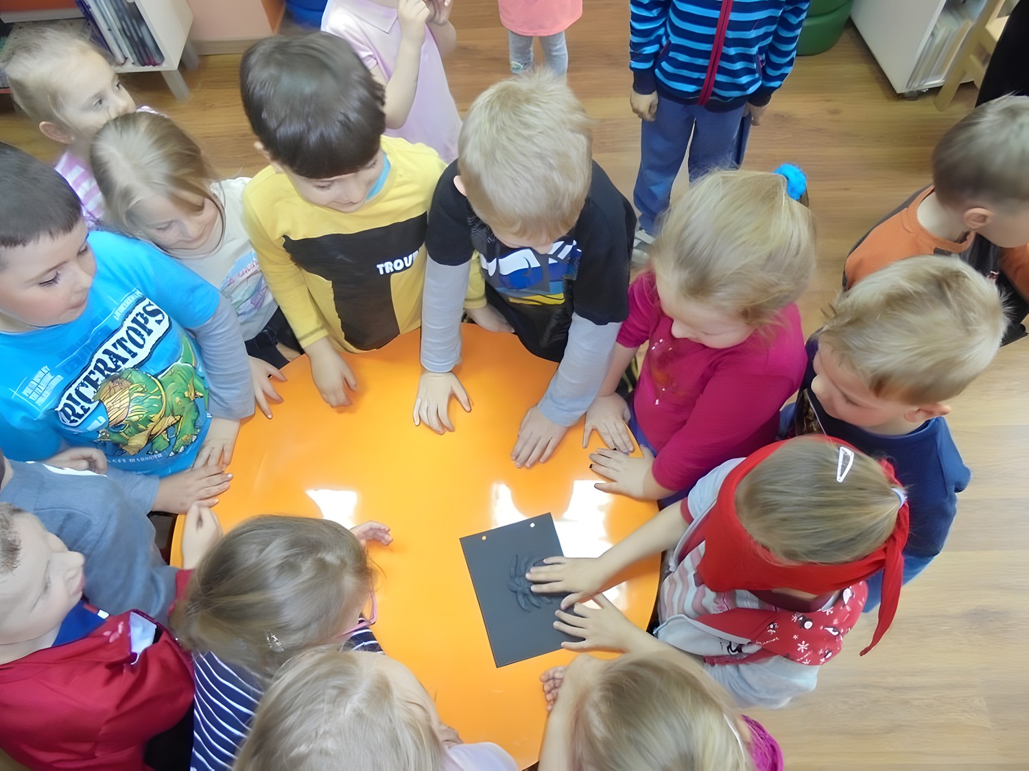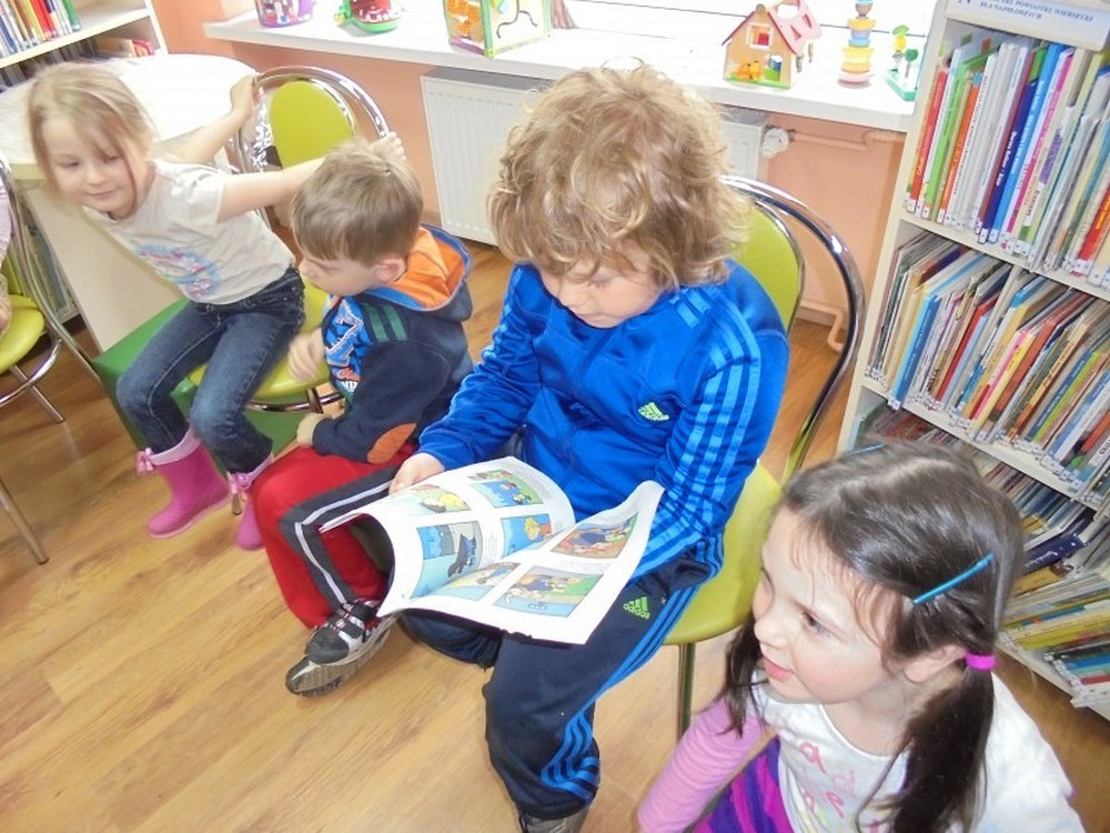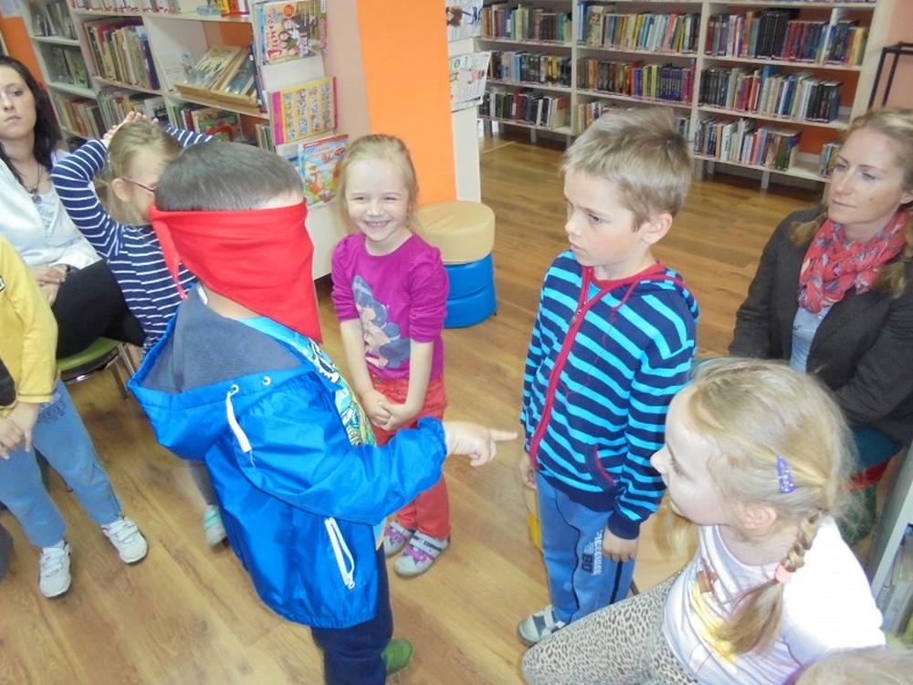 9 maja w Tygodniu Bibliotek odbyło się spotkanie z Tygryskami 5- latkami z Przedszkola "Happy Days". Nasze przedszkolaki aktywnie uczestniczyły w pogadance o tolerancji i inności. Wysłuchały opowieści o Tomku, który był osobą niewidomą. Przedszkolaki próbowały wczuć się w postać osoby niewidomej i poznawały świat przez dotyk i słuch. Próbowały odgadywać ilustracje wykonane przez swoich kolegów i koleżanki, nasłuchiwały różnych odgłosów dochodzących z zewnątrz, co sprawiło im wiele radości, ale i trudności. Spotkanie zakończyło się słodkim poczęstunkiem.