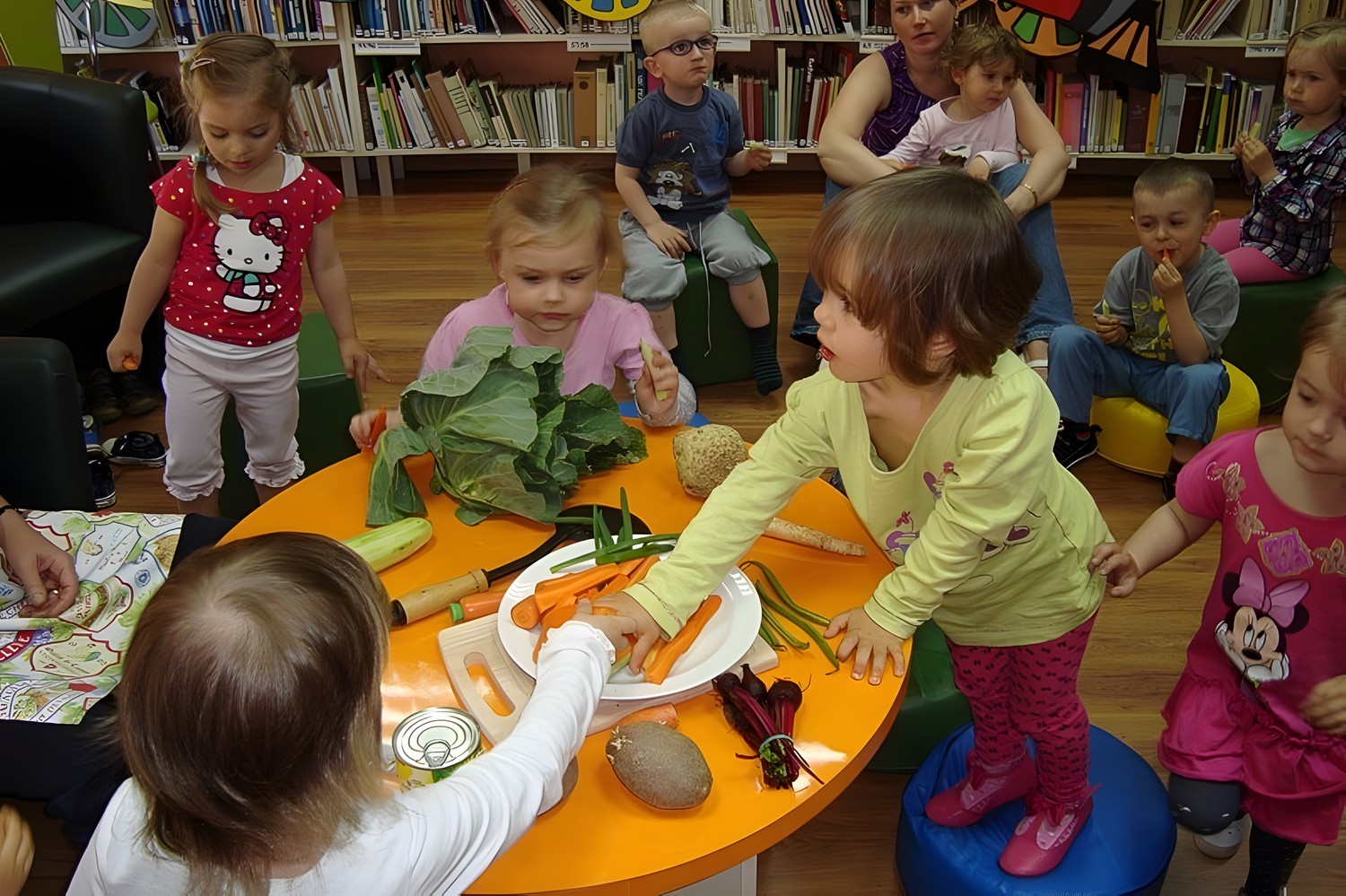 Pracowite "Pszczółki" obrały skłócone warzywa i ugotowały zupę jarzynową.