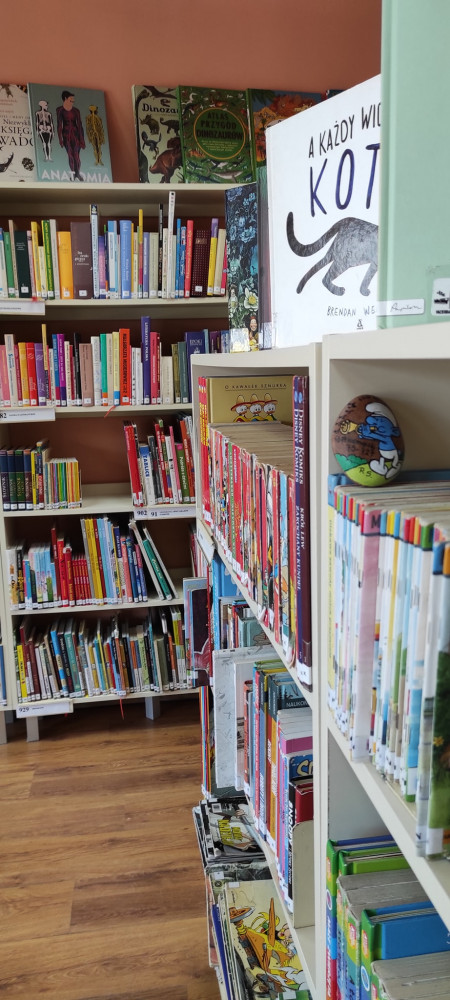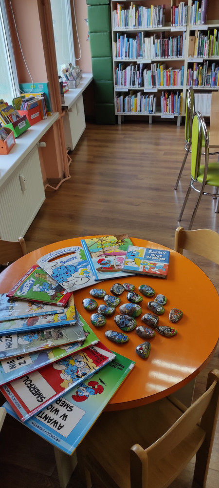 W ostatnich dniach w Filii 3 Koszalińskiej Biblioteki Publicznej- tak, tak, tej koło Urzędu Miasta – małe niebieskie stworki zwane Smerfami pouciekały z książek i pochowały się między regały.