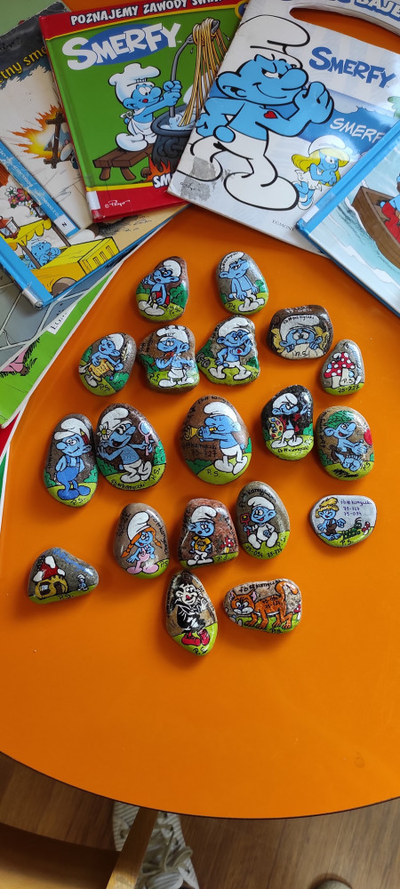 Smerfetkę widziano, jak chciała iść na randkę z Muminkiem, a Śpioch uciął sobie drzemkę obok domku Franklina. Pracuś nie wiedzieć dlaczego, piłował nogi od regału z poezją, chyba dlatego, że Poeta przewrócił wszystkie książki o majsterkowaniu. Papa Smerf zgłębia tajniki magii razem z Harrym Potterem, Smerfiki bawią się w chowanego między pudełkami z grami. Jednym słowem rozrabiają i trzeba zabrać je na wycieczkę.