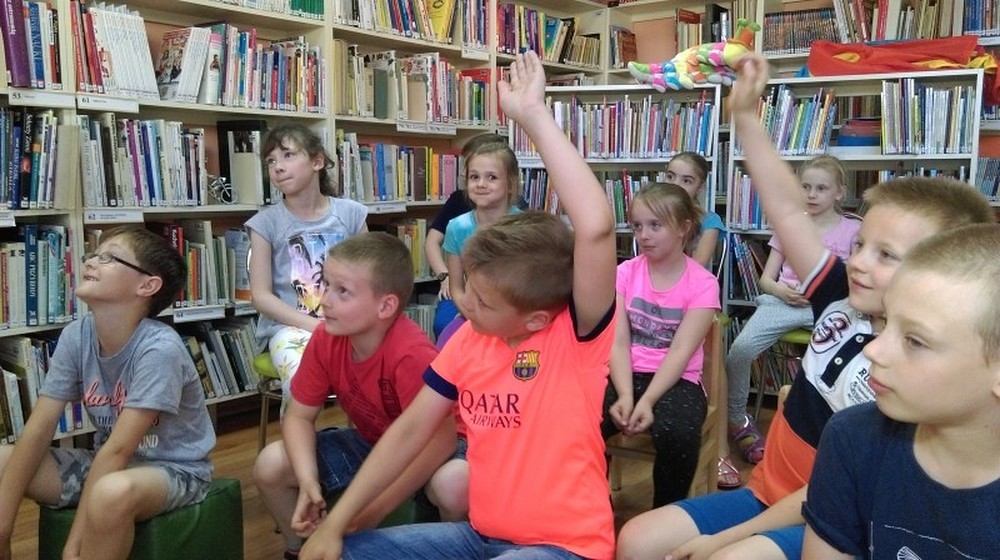Na wiosenną przygodę przybyli do naszej biblioteki uczniowie klasy II b ze Szkoły Podstawowej nr 1, by pobudzić swoją wyobraźnię. Do czego można wykorzystać zwykły ołówek? Co można z niego wyczarować? Zastosowania były różne, a to różdżka albo wskaźnik do pokazywania lub drapaczka do pleców... Nasi uczniowie mieli okazję zapoznać się z naszym teatrzykiem Kamishibai – wysłuchali wiosennej przygody o Kemushim, a jedna uczennica pięknie przeczytała legendę o skarbniku. Dzieciom bardzo podobał się nasz księgozbiór i z zainteresowaniem go przeglądały.