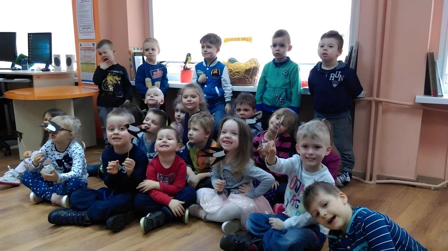 Jedna jaskółka wiosny nie czyni – tak mówi przysłowie, ale 24 na pewno. Wczoraj przyszła do nas kalendarzowa wiosna, dlatego też na wiosenne spotkanie zaprosiliśmy do nas „Motylki” z Przedszkola Happy-Days. Dzieci opowiadały o pierwszych oznakach wiosny, o zbliżających się Świętach Wielkanocnych i ich zwyczajach. Przedszkolaki wysłuchały opowiadania „Wiosenna przygoda Królika”, z radością wzięły udział w proponowanych zabawach, równie chętnie wykonały przysłowiowe jaskółki.