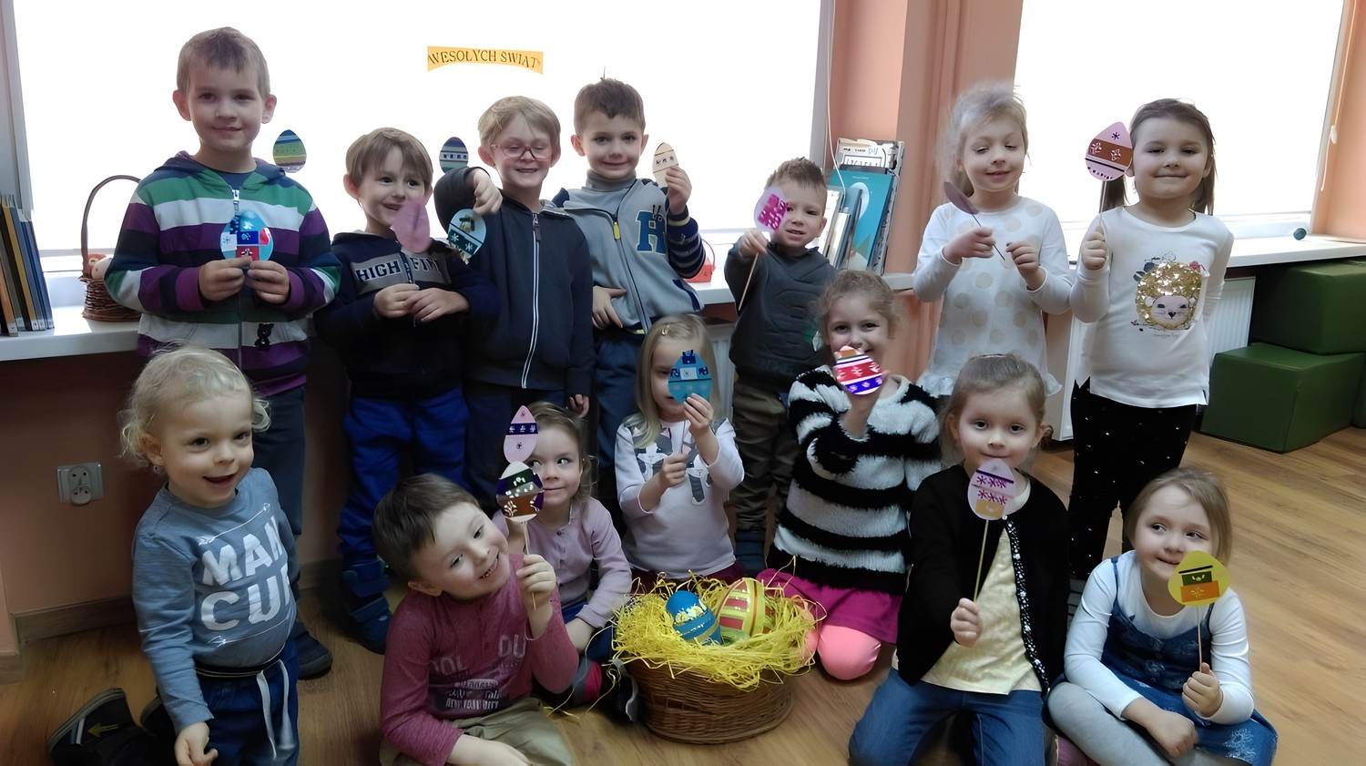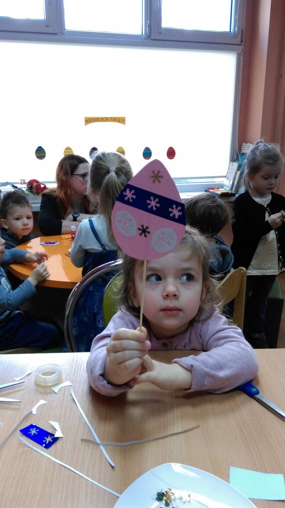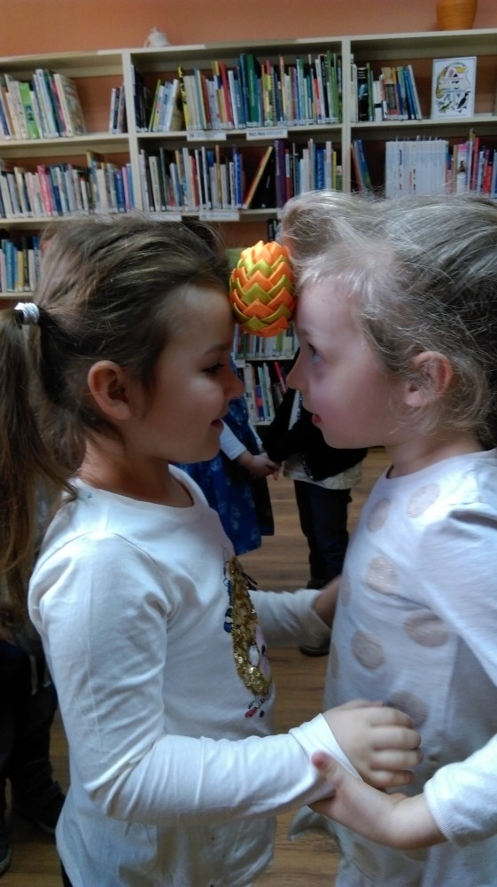 Wiosna zbliża się wielkimi krokami, a za nią Święta Wielkanocne. Rozpoczynamy cykl spotkań z tradycjami i obrzędami polskimi. Dzisiejsza grupa przedszkolaków z „Zaczarowanego Domku” wysłuchała wiosenne opowiadanie oraz wzięła udział w proponowanych zabawach wielkanocnych. Dzieci odgadły wszystkie atrybuty wielkanocne, wykonały swoją pisankę, a na zakończenie zatańczyły taniec z pisanką.