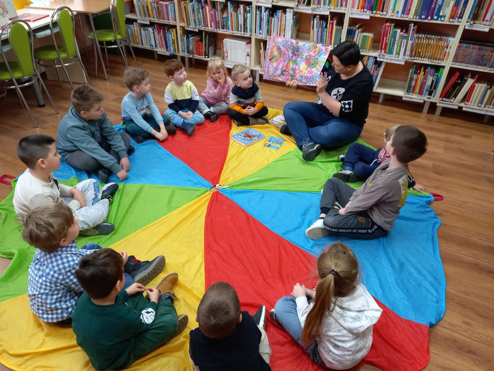 Niepubliczne Przedszkole Kangurek dziś w naszej bibliotece uczestniczyło w spotkaniu, podczas którego rozmawialiśmy o nadchodzącej już wiośnie.