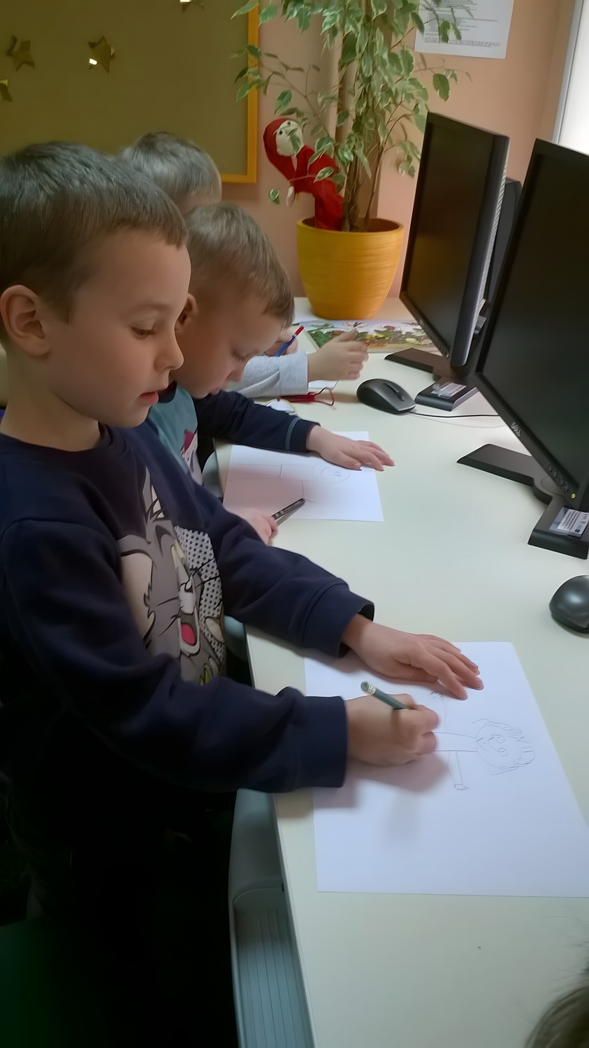 Dnia 2. Marca, mokrego, marcowego ranka, odwiedziły nas dzieci z przedszkola „Bambino”. Przedszkolaki z uwagą i zrozumieniem wysłuchały opowiadania pod tytułem „Wspomnienia”, następnie wspominały miłe historie związane z babcią i dziadkiem. Udało się również wykonać portrety swoich dziadków, a oto niektóre z nich. Spotkanie zakończyliśmy wesołymi zabawami.