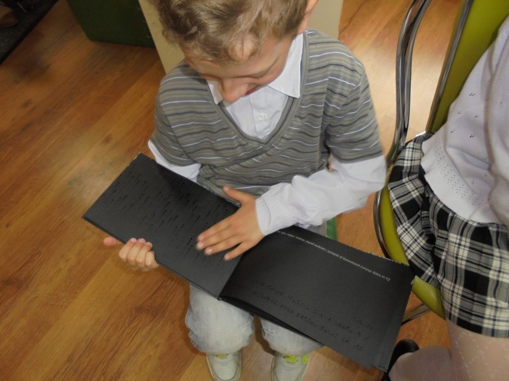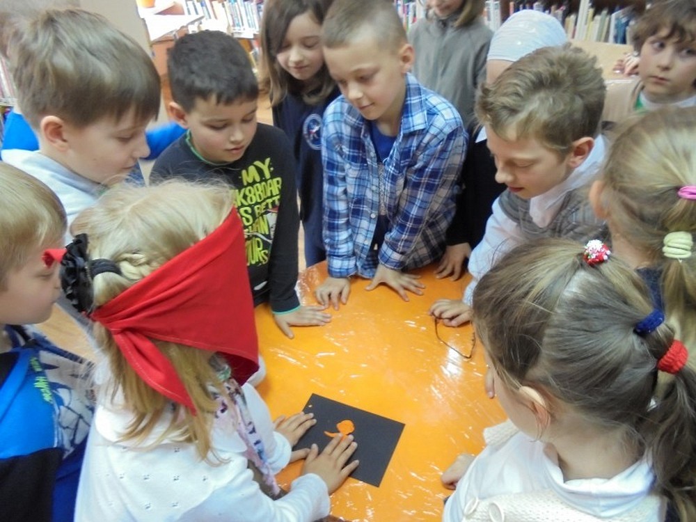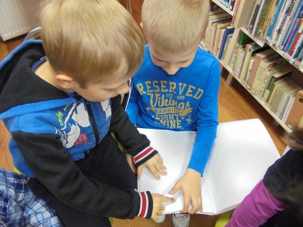 14 maja do naszej biblioteki przybyli uczniowie z klasy I Szkoły Podstawowej Integracyjnej 21 w Koszalinie. Uczniowie ci z tolerancją i niepełnosprawnością mają do czynienia na co dzień, więc temat ten nie jest im obcy. Dzieci zapoznały się z niewidomym Tomkiem, bohaterem „Czarnej książki kolorów" oraz dziewczynką z książki „Dźwięki kolorów". W trakcie zajęć aktywnie uczestniczyły w zabawach. Z zakrytymi oczami rozpoznawali po głosie swoich kolegów i koleżanki oraz przedmioty. Na zakończenie zajęć uczniowie wykonali własną „Czarną książkę kolorów". Spotkanie odbyło się w miłej i wesołej atmosferze, uczniowie obiecali nas ponownie odwiedzić w najbliższym czasie. Zapraszamy!