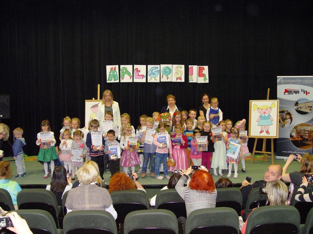 14 maja w Koszalińskiej Bibliotece Publicznej odbył się finał powiatowego przeglądu recytatorskiego dla przedszkolaków pn. „Małgosie". Dzieci z powiatu koszalińskiego recytowały wiersze Małgorzaty Strzałkowskiej, autorki książeczek dla dzieci. W tym konkursie brała udział nasza 5-letnia czytelniczka Zuzanna Pachciarek, która recytowała wiersz „Bordo Morda" i została wyróżniona. Serdecznie gratulujemy!