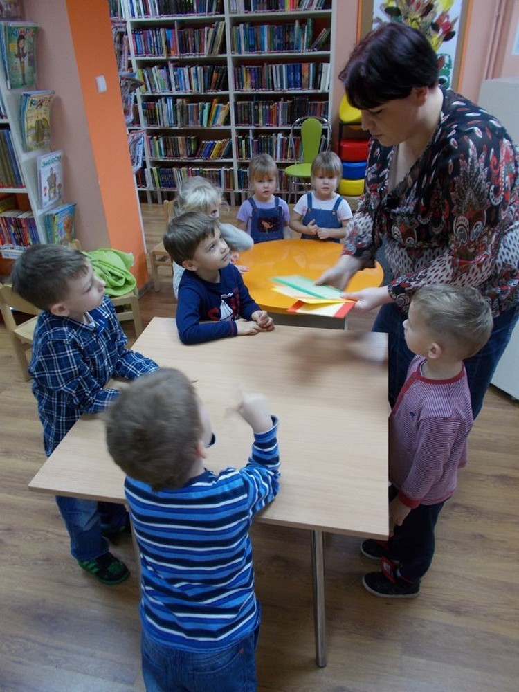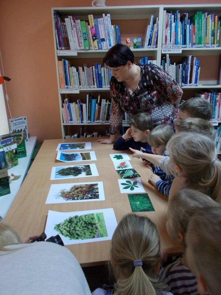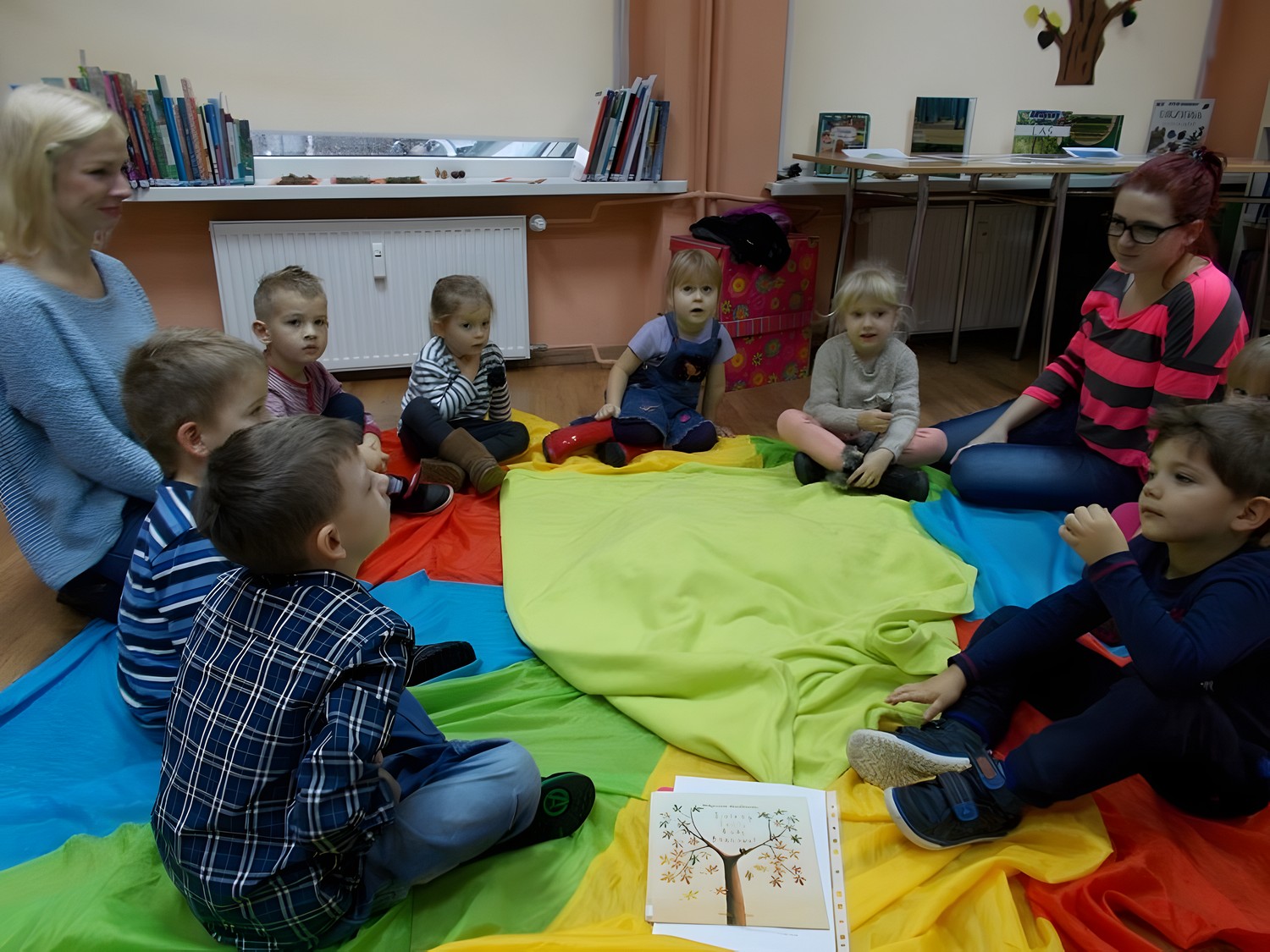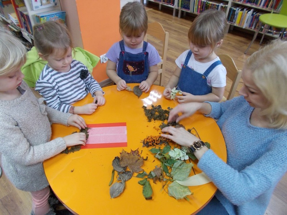 W jesienny i deszczowy dzień listopadowy odwiedziło nas Przedszkole Zaczarowany Domek. Tematem spotkania była jesień. Dzieci wysłuchały kilka wierszy Małgorzaty Strzałkowskiej o deszczu, drzewach i jesiennej porze. Zapoznały się z niektórymi gatunkami drzew i prawidłowo dopasowały liście do konkretnego gatunku drzewa oraz wspólnie się bawiły. Na zakończenia spotkania wykonały jesienną pracę plastyczną.