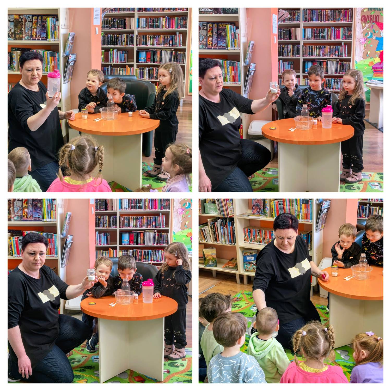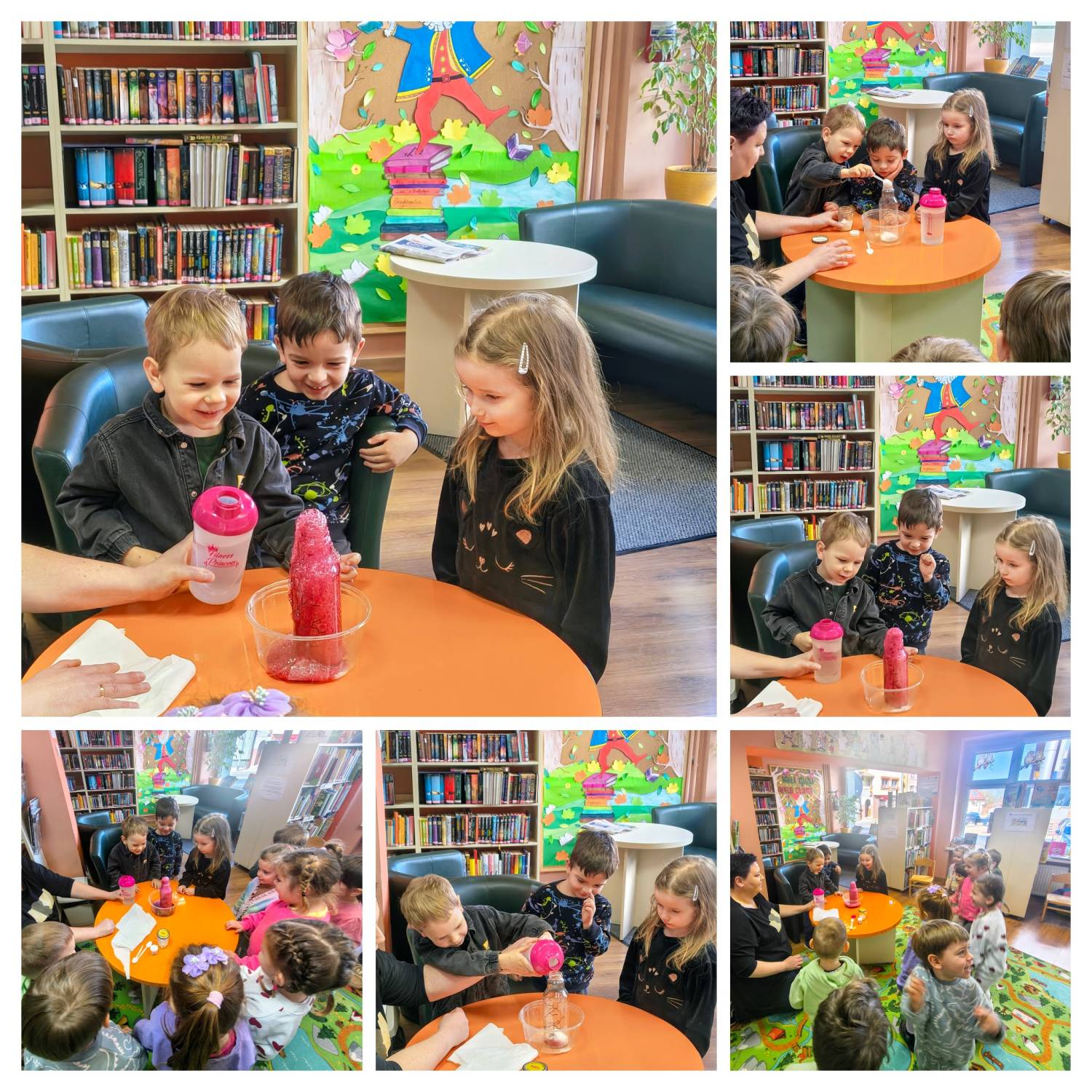 Naszymi dzisiejszymi gośćmi byli Zdobywcy z Niepublicznego Przedszkola Kamyczek. Spotkanie rozpoczęliśmy od wyjątkowego seansu w teatrzyku Kamishibai. Dzieci z zapartym tchem śledziły losy bohaterów opowiadania Wojciecha Widłaka „Syrop maga Abrakabry”. Po lekturze przyszedł czas na test spostrzegawczości - z małą pomocą przedszkolaki poradziły sobie z zagadkami dotyczącymi tekstu.