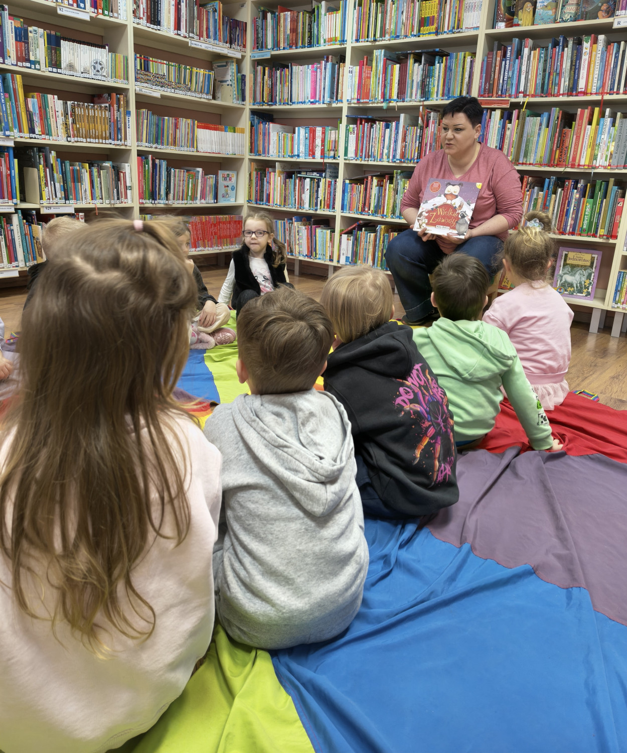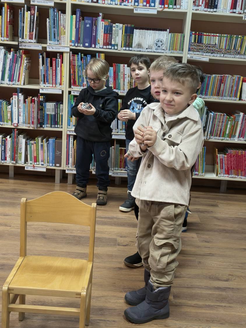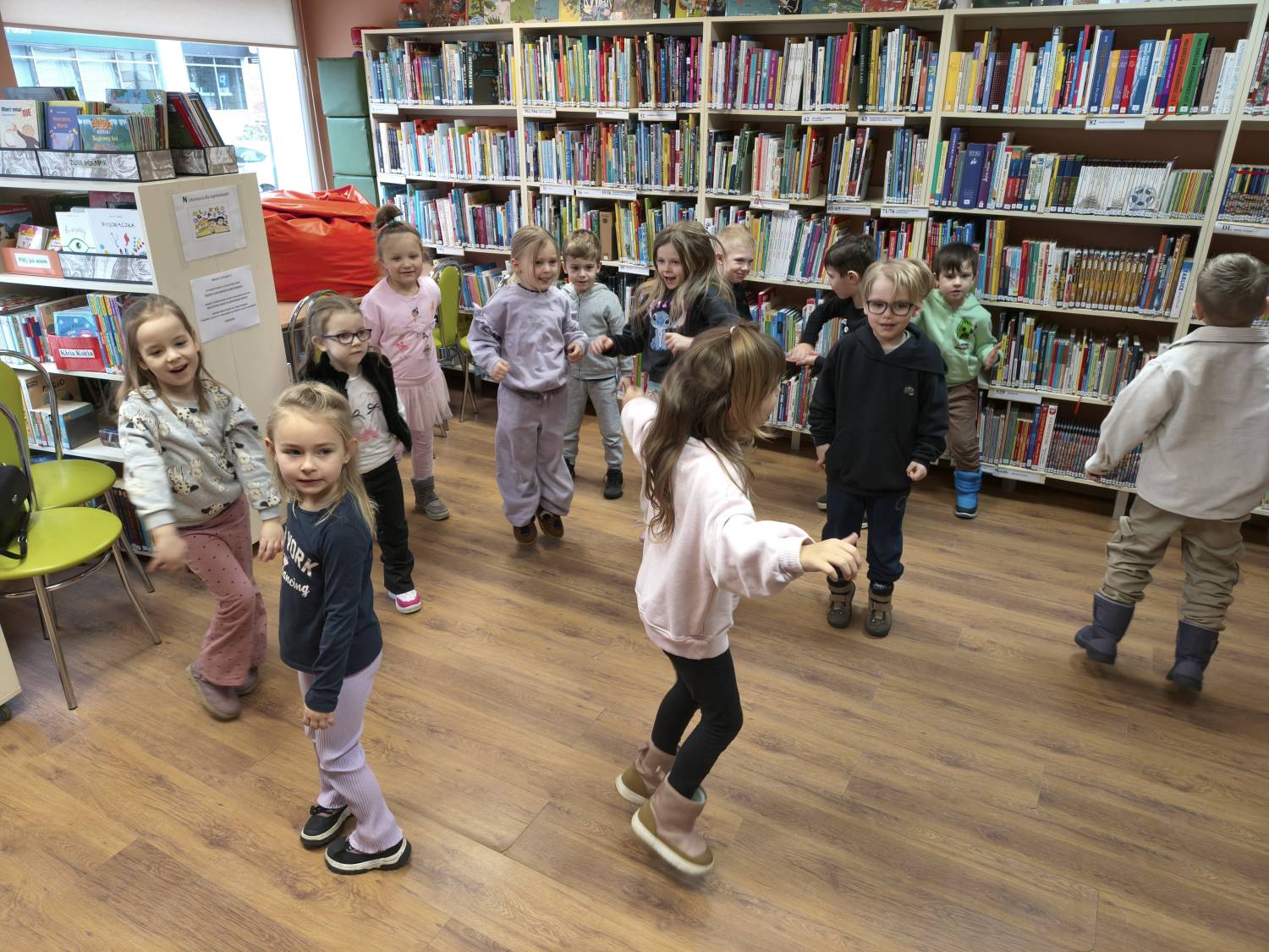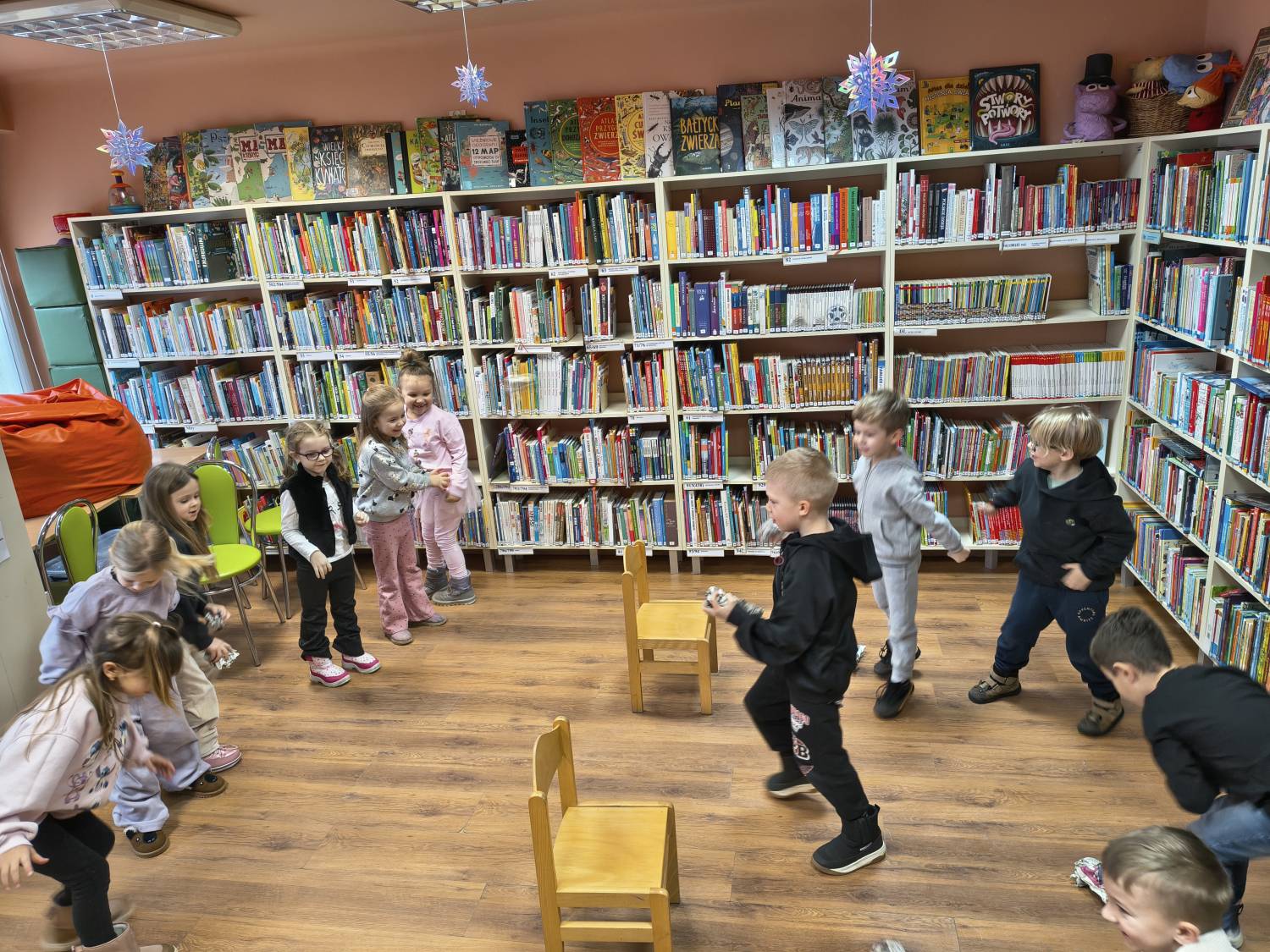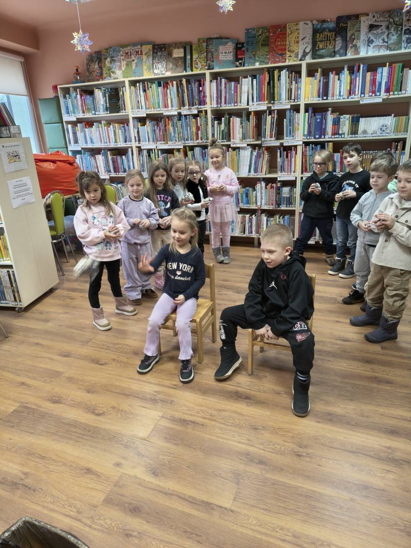 Zimowe zabawy w bibliotece z grupą "Szczebiotek", które przybyły ze Żłobka i Przedszkola Zaczarowany Domek były udane!!!!