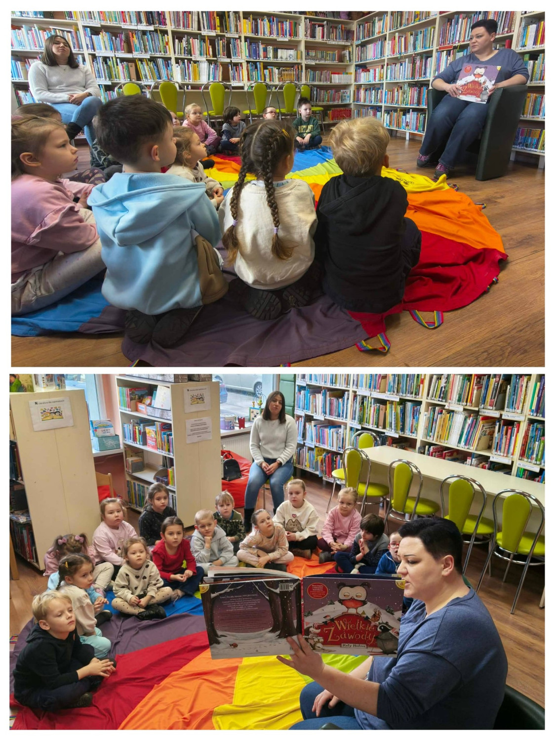 Przedszkolaki wysłuchały opowiadania o Wielkich zawodach zimowych w lesie.