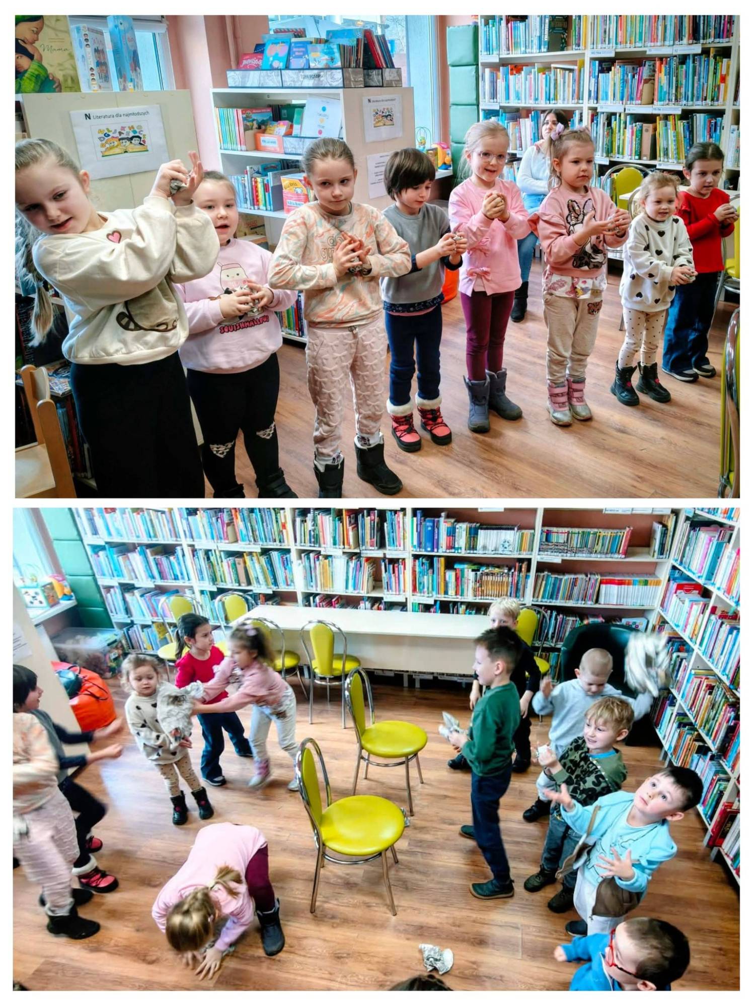Następnie przystąpiły do przygotowanych przez bibliotekarki konkurencji sportowych: bitwa na śnieżki- remis, rzut do celu- remis i porażka, zabawy w sople lodu- wygrała Judytka!