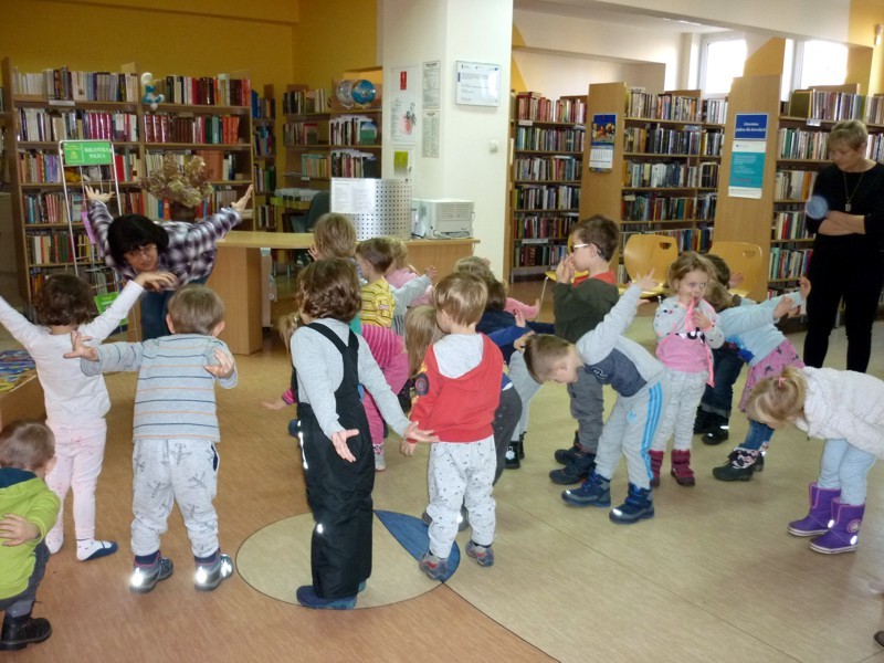 30 listopada w naszych gościnnych progach pojawiły się maluchy z Przedszkola nr 35 w Koszalinie. Grupa PSZCZÓŁEK zapoznała się z miejscem GDZIE MIESZKA KSIĄŻECZKA, wysłuchała przygód KICI-KOCI W BIBLIOTECE (A. Głowińska) i trafnie rozpoznała bohaterów klasycznych baśni. PSZCZÓŁKI były nieco onieśmielone. Nawet podczas zabaw baraszkowały umiarkowanie. Za to HOPKI na sam koniec były fantastyczne!