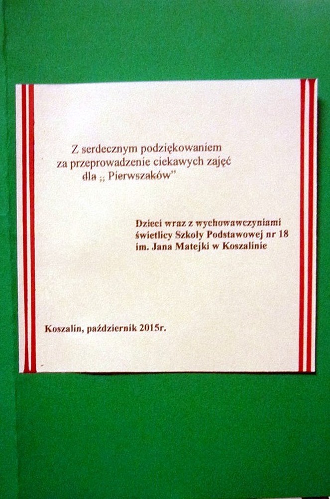 Nauka czytania to jedno z najtrudniejszych wyzwań z jakim musi zmierzyć się dziecko sześcioletnie. Dzięki kreatywnym zabawom, dynamicznej akcji i wielu innym "chwytom", poznawanie literek stało się wspaniałą przygodą. Na taką właśnie przygodę - w słoneczny poranek 27 października - przybyły dzieci ze świetlicy Szkoły Podstawowej nr 18 w Koszalinie.