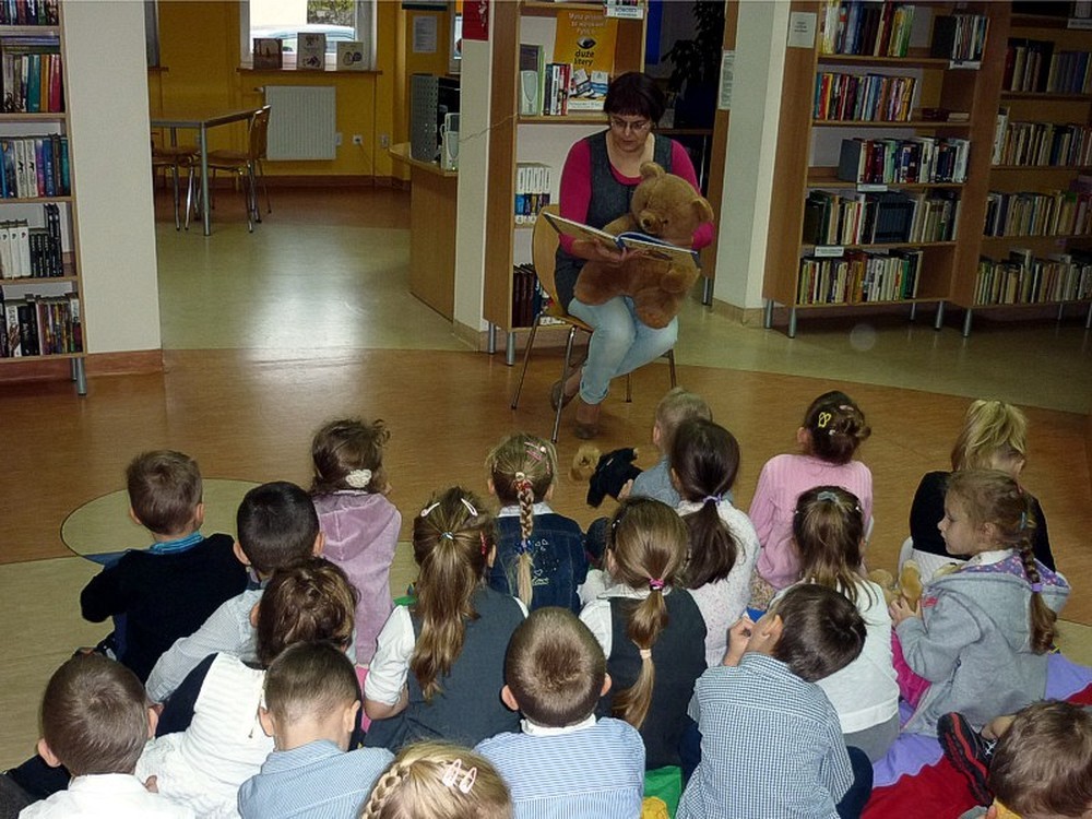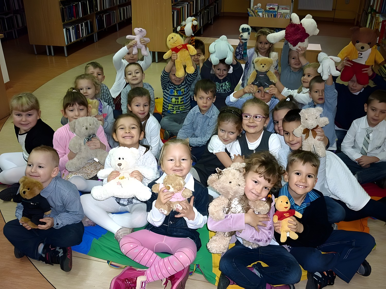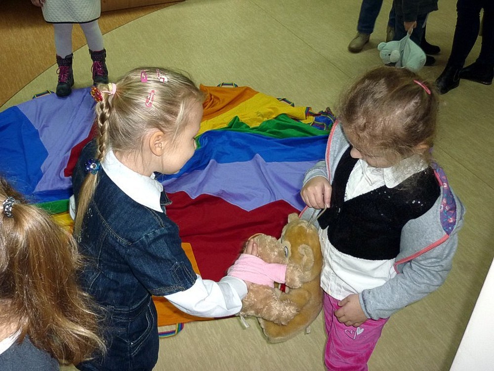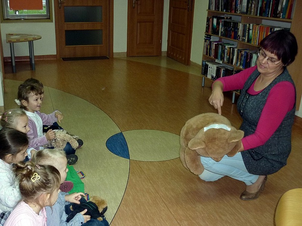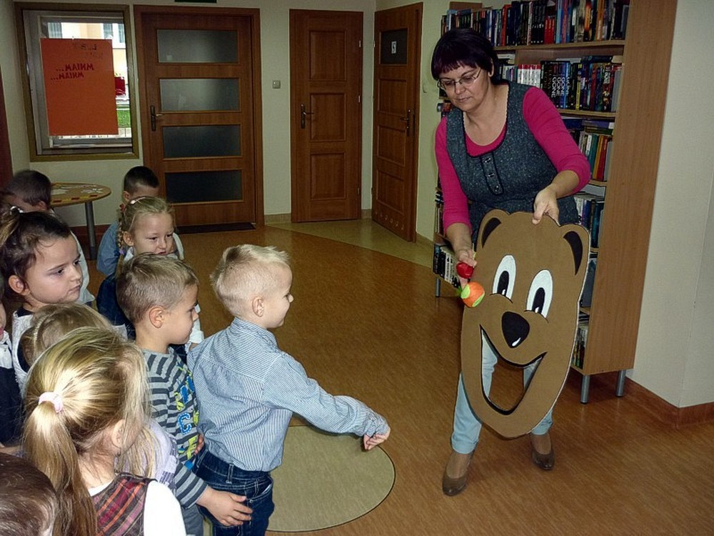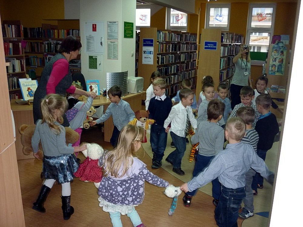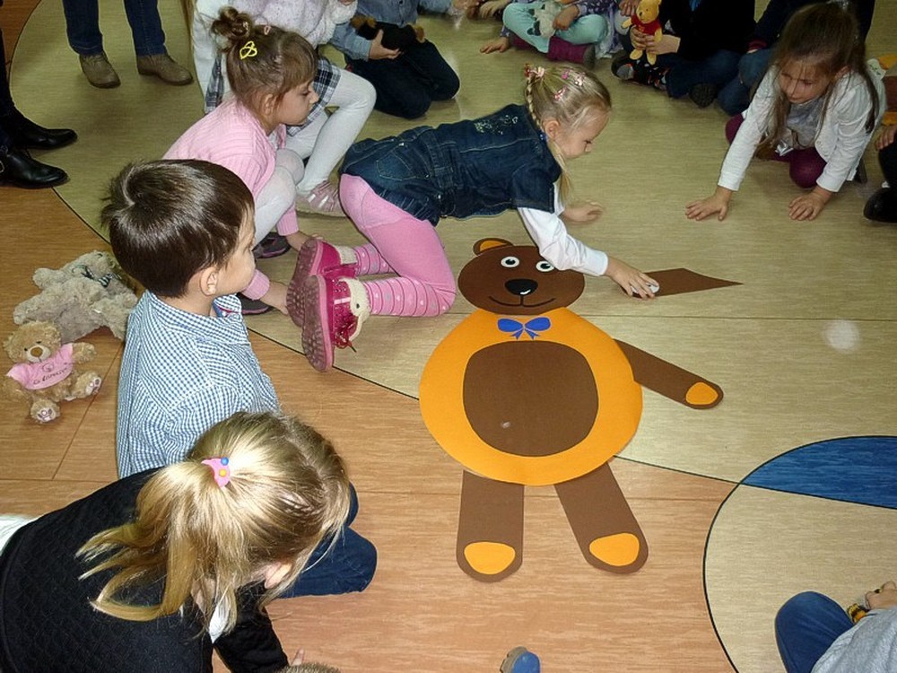 26 listopada bawiły się z nami rezolutne pięciolatki z Przedszkola nr 15 w Koszalinie. Wyjątkowo zdyscyplinowana grupa, cierpliwie wysłuchała opowieści o Uszatku i Paddingtonie. Spośród licznych atrakcji dzieci na pewno zapamiętają wierszyki masażyki i szalone harce przy muzyce. Najwięcej trudności sprawiła dzieciom ponumerowana misiowa układanka. Długo nie mogliśmy odczarować cyfry "4", która była łapką misia.