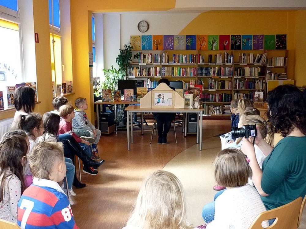 Dziś - 27 kwietnia - odwiedziły nas sześciolatki z Niepublicznego Przedszkola CALINECZKA, i była to pierwsza wizyta tej grupy w naszej bibliotece.
