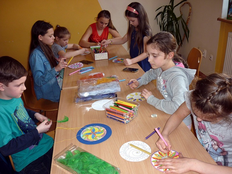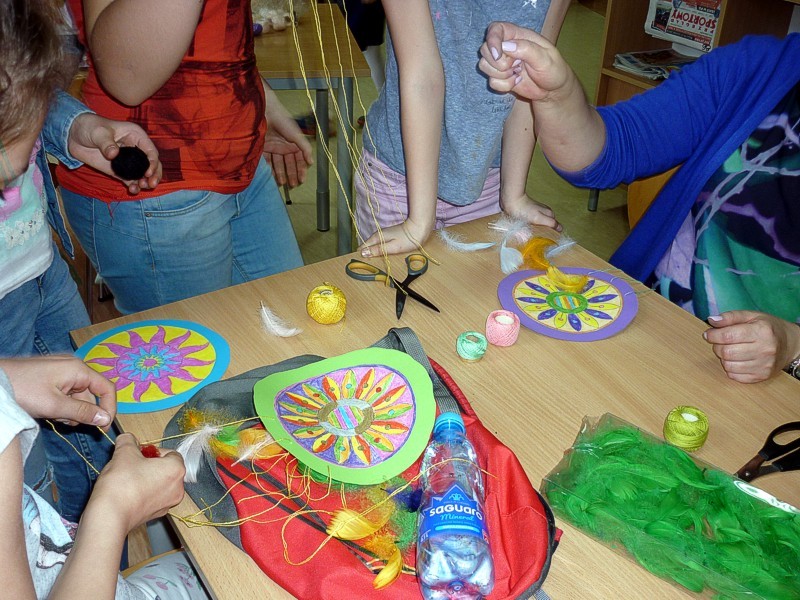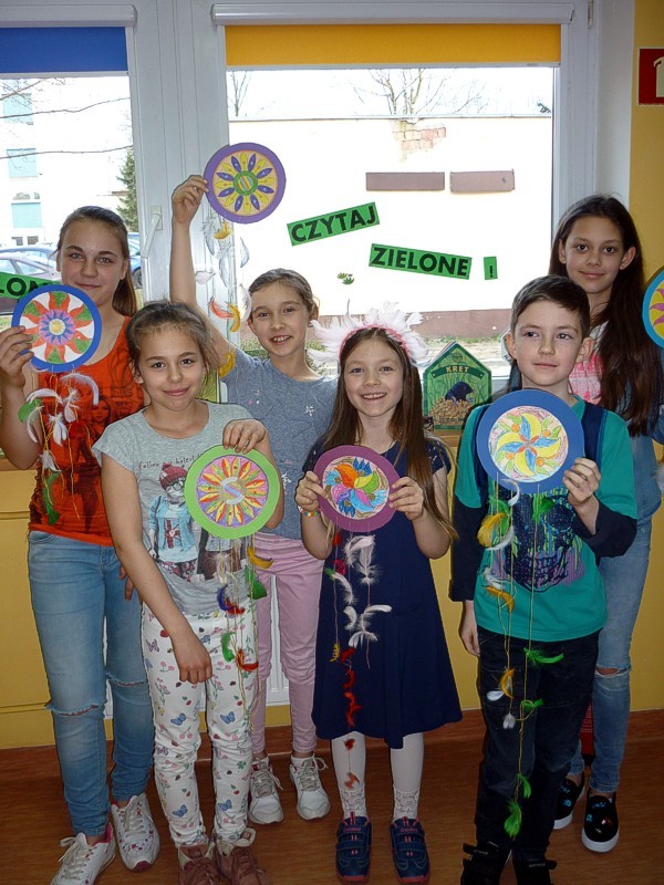 W piątkowe popołudnie - 13 kwietnia - spotkały się MOLIKI książkowe. Zaprezentowane i polecane przez nas hity książkowe z amerykańskiego repertuaru, spodobały się Molikom tak bardzo, że od razu wypożyczyły kilka pozycji! Kolejną atrakcją spotkania stały się indiańskie ŁAPACZE SNÓW. Na wzór oryginalnych, Moliki wykonały ich efektowne papierowe wersje, przyozdobione kolorowymi piórkami.