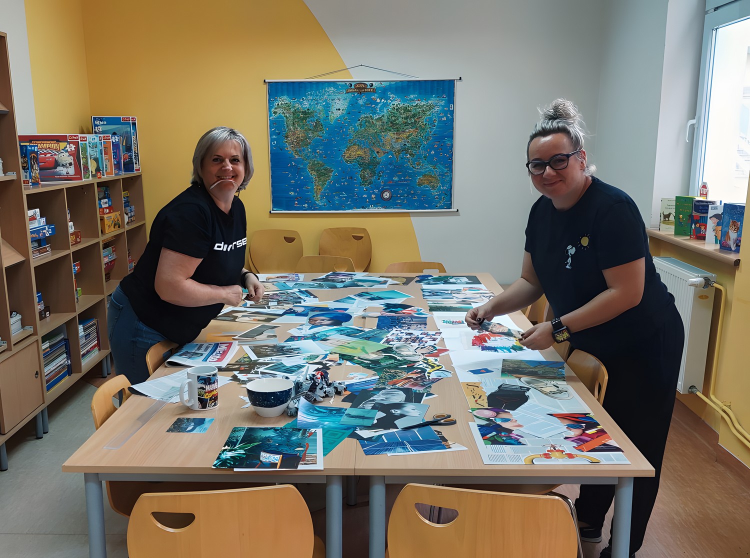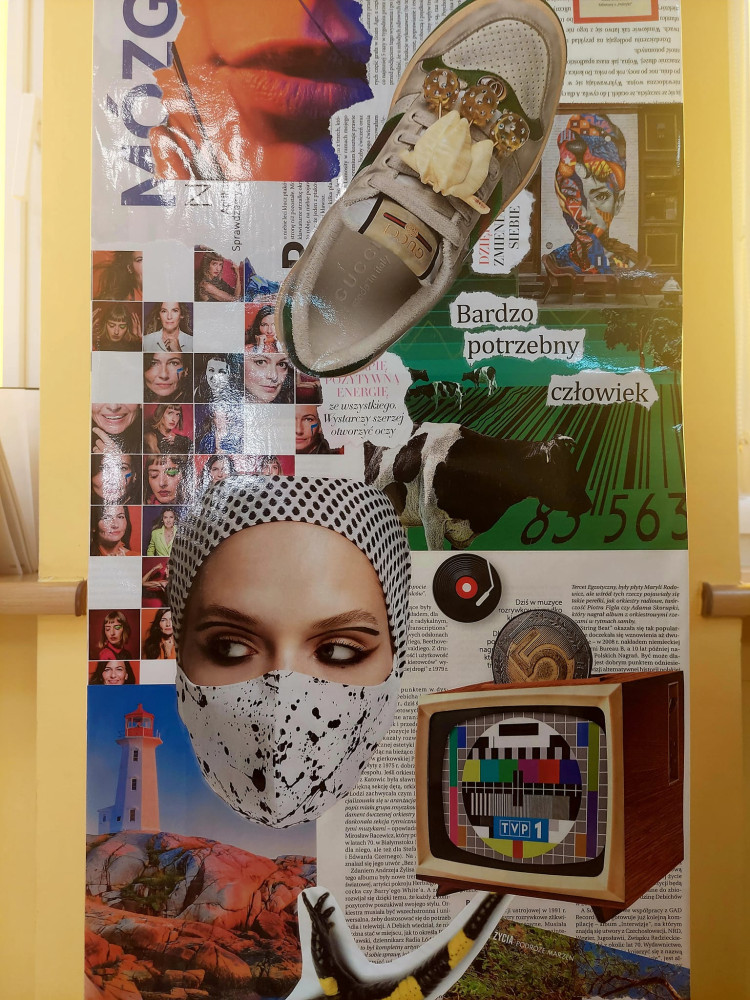 Od początku września w naszej czytelni trwała praca twórcza Wycinałyśmy, darłyśmy i wyrywałyśmy ze starych gazet wszystko, co kolorowe i interesujące Twarze, sielankowe widoczki i wypasione buty Krowy, telewizory, supermeni i chwytliwe hasła ARTYSTYCZNY (niezbyt) kontrolowany NIEŁAD - to kolejna oryginalna kompozycja, która zdobi już drugi filar w czytelni. Jak zwykle było mnóstwo dobrej zabawy, twardych negocjacji i artystycznych przepychanek My bawiłyśmy się świetnie, a Wy oceńcie sami, czy było warto...