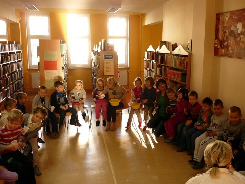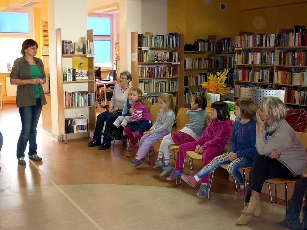 W słoneczny, jesienny poranek 19 października, nasza biblioteka gościła grupę sześciolatków z Przedszkola nr 15 w Koszalinie oraz Panią Jadzię - babcię 5 wnucząt.