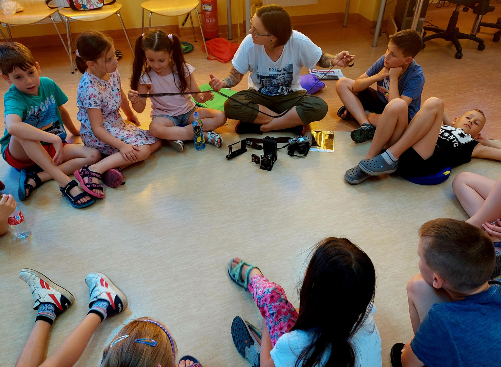 21 lipca CZWARTEK - to był szalony dzień! Na zajęcia, z impetem i niesamowitą energią wjechała na elektrycznej hulajnodze fotoreporterka - Pani Magda Pater WARSZTATY FOTOGRAFICZNE - to był hit czwartkowych zajęć! Pasja i zaangażowanie Magdy udzieliły się nam wszystkim Fascynujące opowieści z historii fotografii ilustrowane ciekawymi eksponatami, były wstępem do szalonej zabawy, jaką okazało się fotografowanie Powstało mnóstwo fantastycznych zdjęć - nie tylko pozowanych Magda - DZIĘKUJEMY