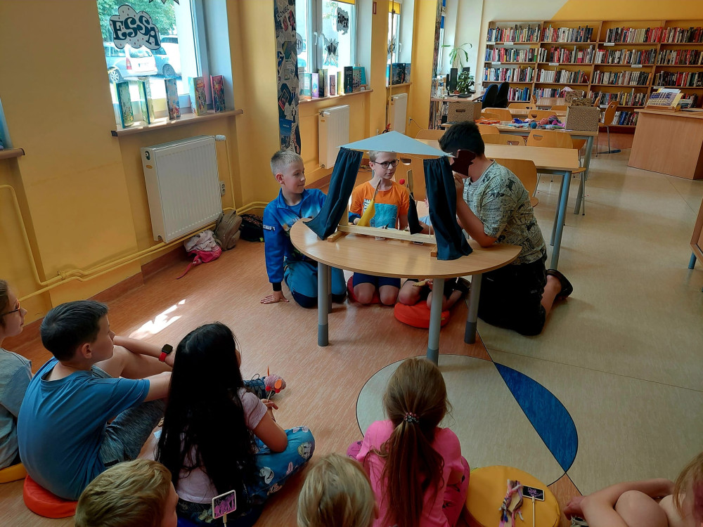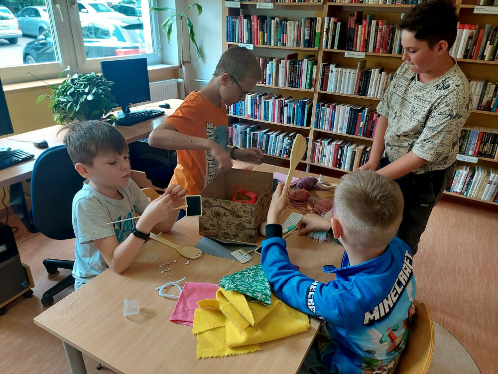 Hej! Za nami pierwszy dzień warsztatów w ramach akcji BEZPIECZNE WAKACJE W BIBLIOTECE. Animatorka BEATA PIWAR, jak zwykle, poprowadziła świetne zajęcia plastyczne! Dzieciaki przygotowały oryginalne kukiełki, które posłużyły do odegrania scenek z dużą dawką emocji... Na nudę nie było czasu! To był wspaniały dzień, przepełniony pozytywną energią i dobrymi emocjami...