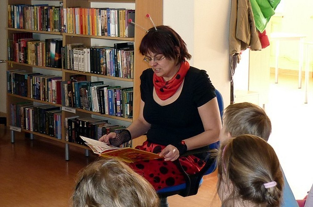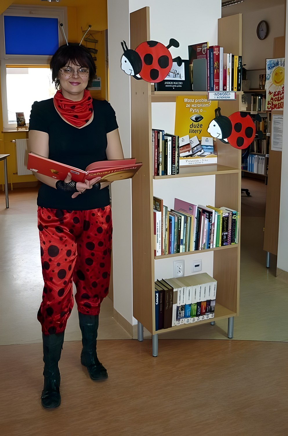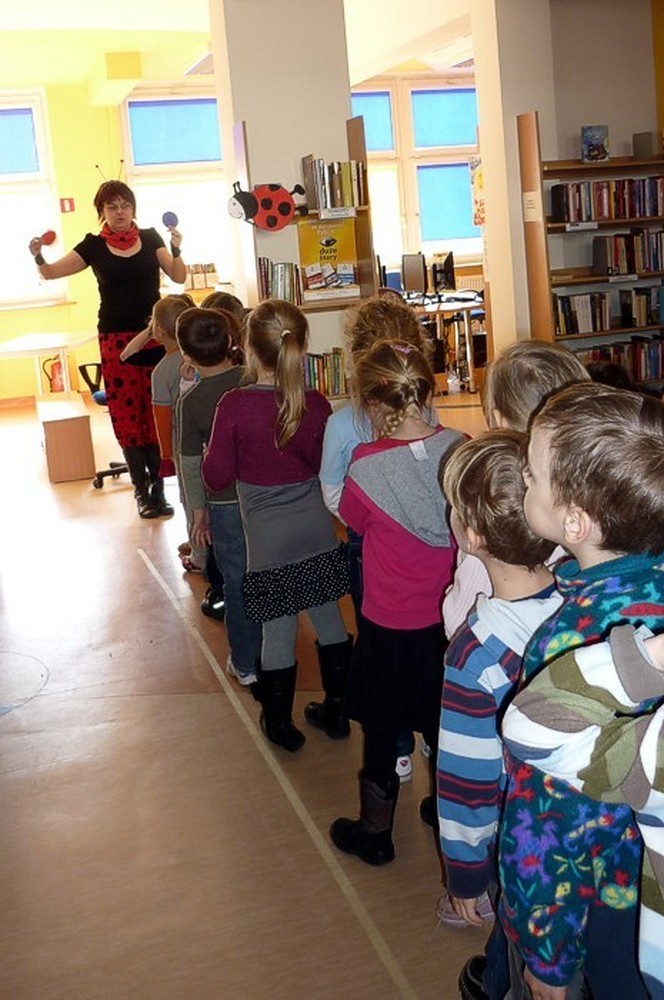 BIEDRONKA przeczytała dzieciom ciekawą historię o Basi i bałaganie Zofii Staneckiej, a następnie zaprosiła je do zabawy. W programie - analogicznie do pory roku - znalazły się "wiosenne porządki w bibliotece" i gra w "ciepło - zimno".