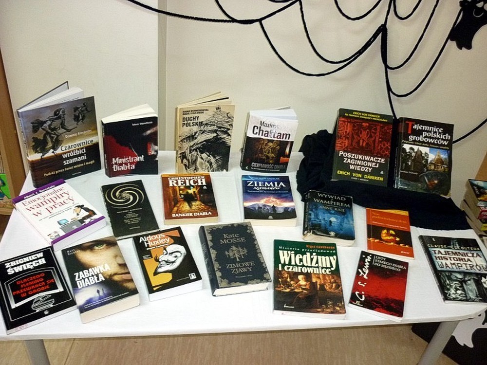 Cytat z "Dziadów" Adama Mickiewicza posłużył nam za motto tematycznej wystawy literatury popularnonaukowej i pięknej dla dorosłych. Znalazły się na niej książki o tematyce pełnej wiedźm, czarownic i średniowiecznej inkwizycji, emocjonalnych korporacyjnych wampirów, oraz diabelnie mocnej sensacji.