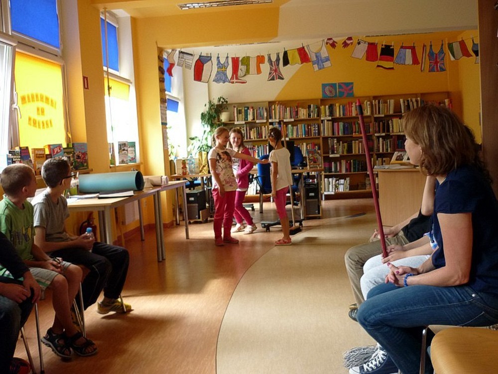 Przez cztery kolejne dni, grupa omawiała ważne wartości w życiu człowieka. Oprócz tego interpretowała teksty literackie, pracowała nad emocjami, uczyła się dykcji i budowała etiudy. Za sprawą różnorodnych i ciekawych ćwiczeń, dzieci miały poczucie dobrej zabawy. Ostatniego dnia warsztatów, grupa przygotowała niezwykły pokaz, inscenizując wiersze: DYZIO MARZYCIEL - J. Tuwima, PRZYJACIELE - J. Krasickiego i KWOKA - J. Brzechwy. Popisy dzieci z przyjemnością obejrzała nasza Dyrekcja. Pani Joanna pochwaliła grę swoich uczniów oraz fanów w jednym. Faktycznie, byli świetni! Kto nie widział, niech żałuje.