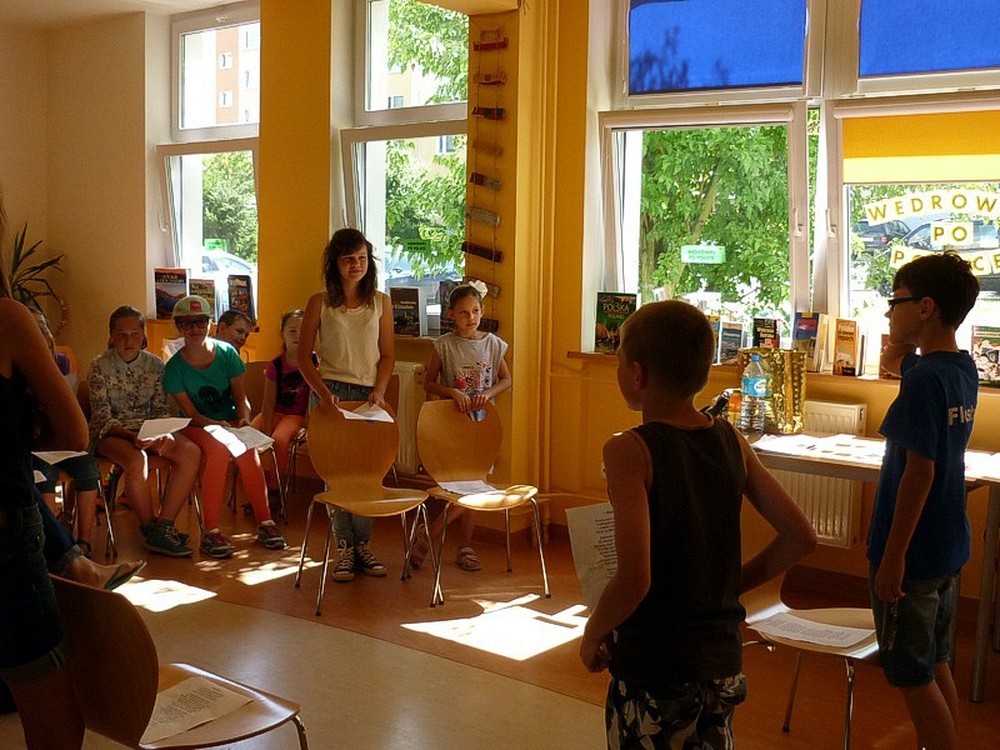 W dniach od 14 do 18 lipca dzieci spędzające wakacje w naszej bibliotece, brały udział w warsztatach teatralnych, które poprowadziła aktorka teatralna-lalkarz JOANNA BORER z Warszawy.