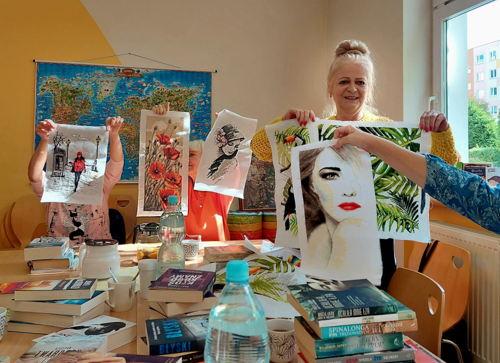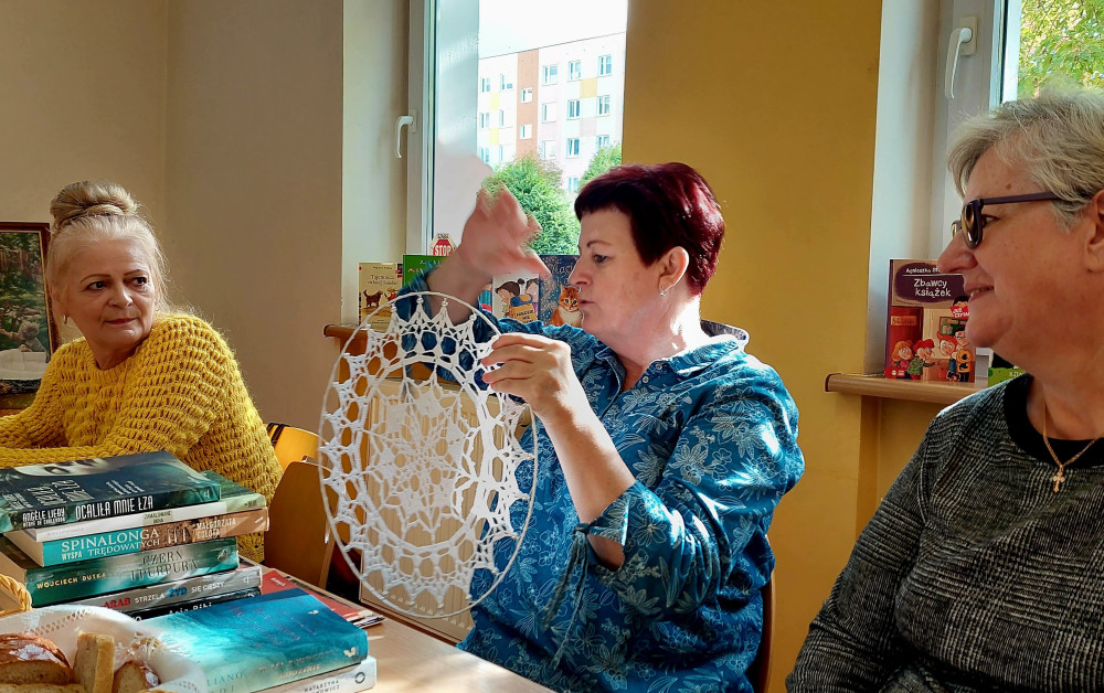 Ewa, Bożenka i Małgosia - o przepięknym, wyciszającym i pomagającym przetrwać niejedną trudną chwilę hafcie krzyżykowym. Jola - o cudach szydełkowych, ale nie łapaczach snów (bo to indiańskie, a nie nasze ) i o tym, że białe muszą być, bo czarne nie wychodzą... Irenka - o pasji ogrodniczej i uwiecznianiu na fotografiach pięknych zachodów słońca Ala - o kolorowaniu dobrym na stres i szkoleniu w dobieraniu kolorów przez wnuczkę Iwonka - z pasją krzyżówkową (będzie sprawdzała naszą wiedzę ), nasza Gosia i jej pasja urbexowa i fotograficzna i Ewa Ewa, która mówi, że żadna z niej poetka - a doprowadziła nas do łez swoimi pełnymi emocji wierszami...