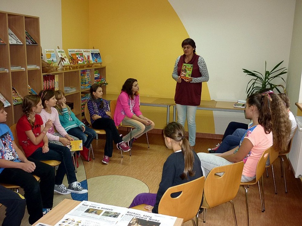 Na molikowe spotkanie w dniu 26 września, do czytelni przybyło aż 16 osób. Czy to temat spotkania wszystkich przyciągnął!? Czy raczej miła aura w bibliotece? A może jeszcze coś innego? W każdym razie, właśnie w tak licznym gronie, przeglądaliśmy najnowsze książki Martyny Wojciechowskiej z cyklu "Dzieciaki świata" i "Zwierzaki świata". Piękne fotografie, mnóstwo ciekawostek i świetna narracja - wszystko to sprawiło, że cykle Martyny stały się hitami roku 2014. Zapewniamy, że od teraz będą również bestsellerami naszych najwierniejszych młodych czytelników.