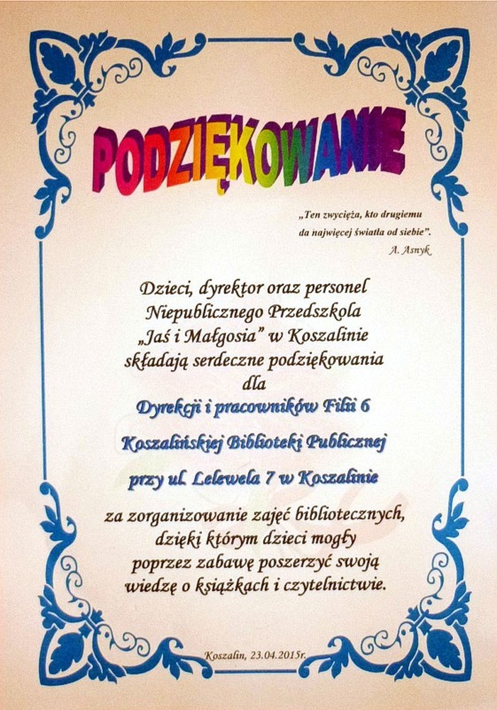 W zamian otrzymałyśmy podziękowania i piękny album.