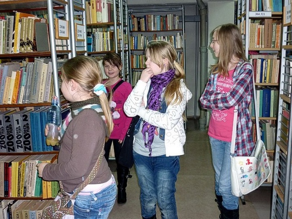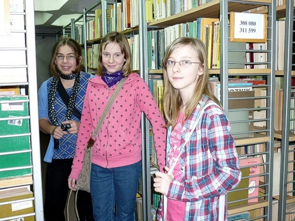 Ciekawie było też w magazynach książek i czasopism. Mogliśmy dotknąć najstarszej książki w zbiorach biblioteki.
