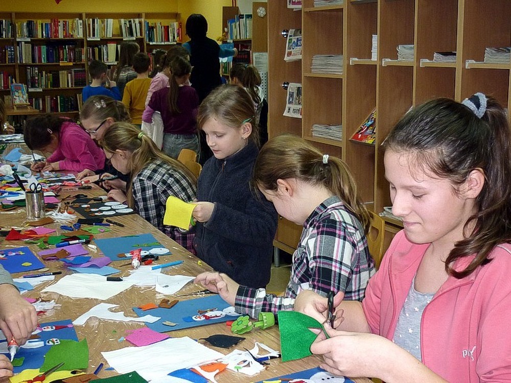 Piątek - 23 stycznia - ostatni dzień zajęć w bibliotece był pełen niespodzianek. Spotkaliśmy się już o godzinie 9-tej, by wyruszyć na wycieczkę do SKANSENU. Tam dowiedzieliśmy się "Jak żyli dawni mieszkańcy Jamna". Całkiem nieźle wypadliśmy w teście sprawdzającym naszą wiedzę. Po powrocie do biblioteki czekała na nas niespodzianka - stół z napojami i słodkościami. Była też PACZKA Z NIESPODZIANKĄ, a na koniec zajęcia plastyczne - BAŁWAN BAŁWANOWI NIERÓWNY. Prace oraz ich autorzy spodobali się też Dyrektorowi biblioteki, który w tym dniu nas odwiedził.