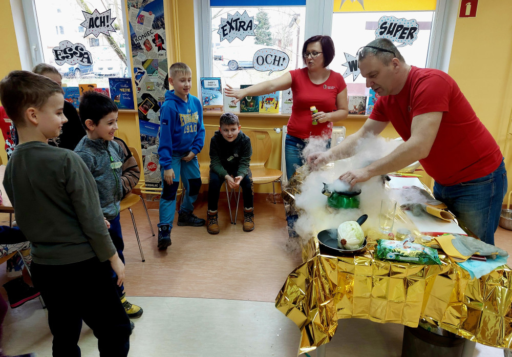 FERIE zimowe i zajęcia w Filii 6 właśnie dobiegły końca. Uczniowie, choć niechętnie, wrócili do szkół, a my już tylko wspominamy te dni pełne wrażeń... Dzieci szkolne skorzystały z naszych atrakcyjnych i różnorodnych propozycji spędzenia wolnego czasu. Były to m. in.: zajęcia edukacyjne z FABRYKĄ POMYSŁÓW, warsztaty teatralne, wycieczki do KBP oraz OBSERWATORIUM ASTRONOMICZNEGO, relaks z książką, a także ulubione gry planszowe i zabawy integracyjne. Dużą niespodziankę sprawił dzieciom nasz czytelnik - Pan Sławomir, który wcielił się w rolę cyrkowego magika i dał fantastyczny popis!