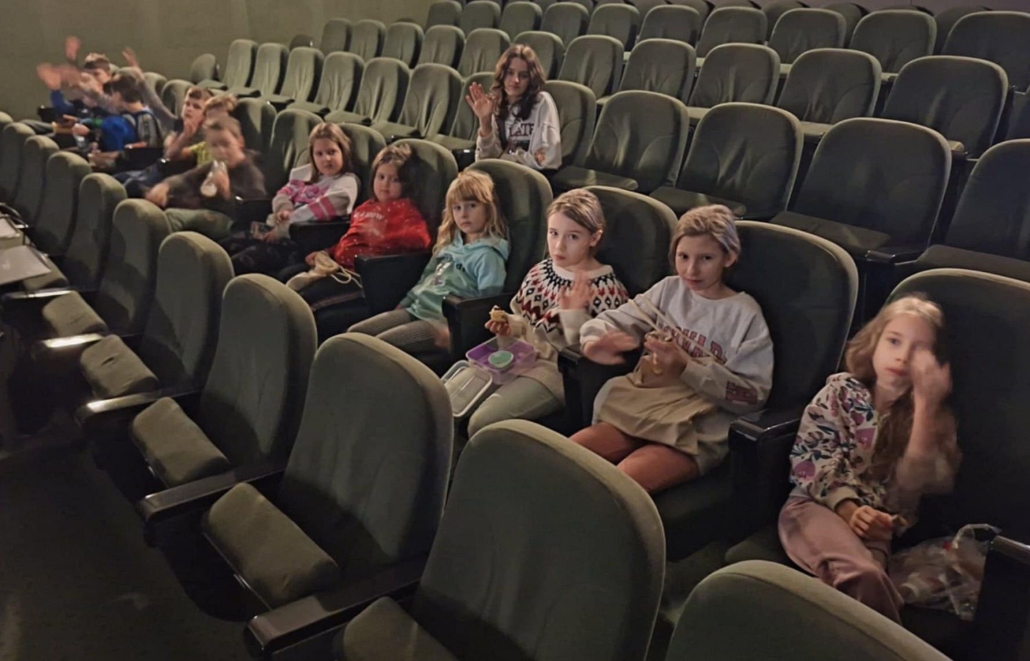 Drugi dzień zajęć feryjnych to same atrakcje, sensacje i niespodzianki. Atrakcją było zaproszenie nas do Biblioteki Głównej na (niemal) prywatny seans filmowy. Już sama podróż dostarczyła dreszczyku emocji, gdy okazało się, że przypominanie o zabraniu ze sobą legitymacji szkolnej to tzw. "rzucanie grochem o ścianę". Na szczęście, wszystko skończyło się dobrze. Na miejscu, koleżanki zaskoczyły nas popcornowym poczęstunkiem - kiedy my, przed wyjściem, cierpliwie tłumaczyłyśmy, że to jest jedyne w Koszalinie kino, gdzie NIE BĘDĄ JEŚĆ! Film pt. "Pan Wilk i spółka" był idealnym dopełnieniem - pościgi i niespodziewane zwroty akcji, to jest TO, co lubimy najbardziej. I chociaż okazało się, że tylko Gosia i Wiola nie widziały wcześniej tej bajki, to wszyscy zgodnie stwierdzili, że bawili się WYŚMIENICIE!