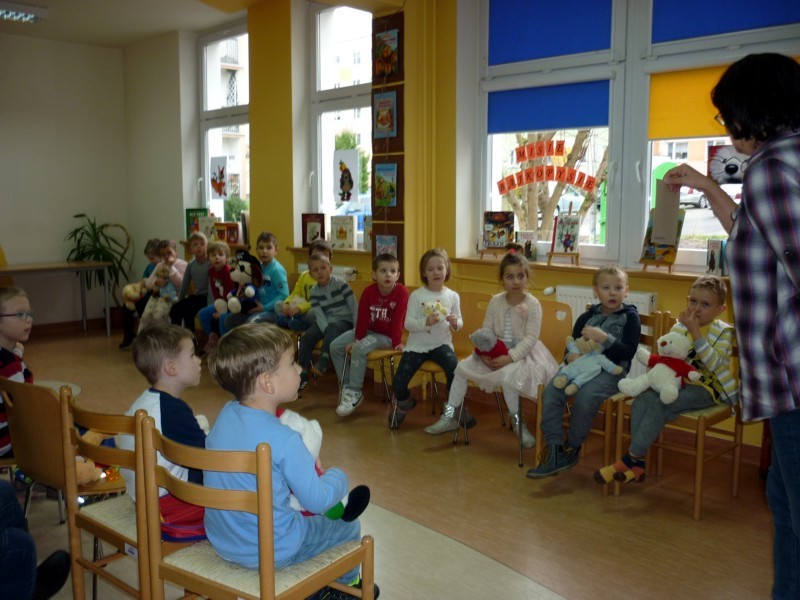 24 listopada gościliśmy zaprzyjaźnioną grupę LEŚNYCH DUSZKÓW z Przedszkola nr 14 w Koszalinie. Sześciolatki przybyły do nas zaopatrzone w misiowe maskotki, wszak okazja ku temu była przednia. Dla przypomnienia - 25 listopada to ŚWIATOWY DZIEŃ PLUSZOWEGO MISIA. Trochę ciekawych historii o pochodzeniu zabawki, wspólne czytanie MISIOWYCH LEKTUR oraz wesołych zabaw teka, złożyły się na mocno rozrywkowy program spotkania. Urodziny Misia to wspaniała okazja do oswojenia się z biblioteką jako miejscem przyjaznym, gdzie można wesoło spędzić czas.
