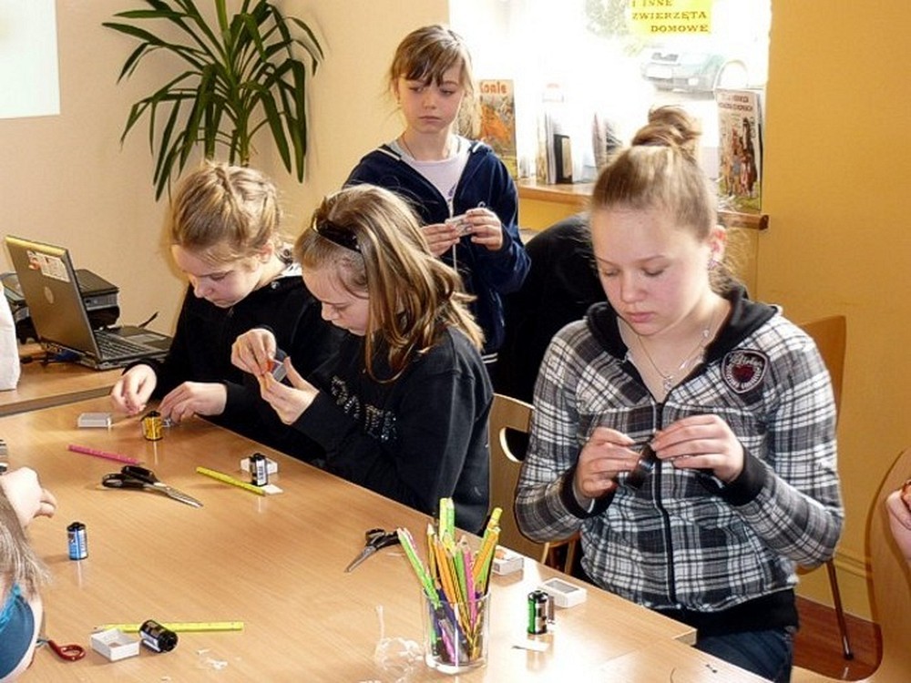 We wtorek 15 lutego, nasi feriowicze wzięli udział w warsztatach z fotografii otworkowej. Pod kierunkiem Pana Wojciecha Greli budowali aparaty. Wcześniej zapoznali się z pojęciem fotografia otworkowa, obejrzeli jakie efekty uzyskuje się robiąc zdjęcia taką techniką.
