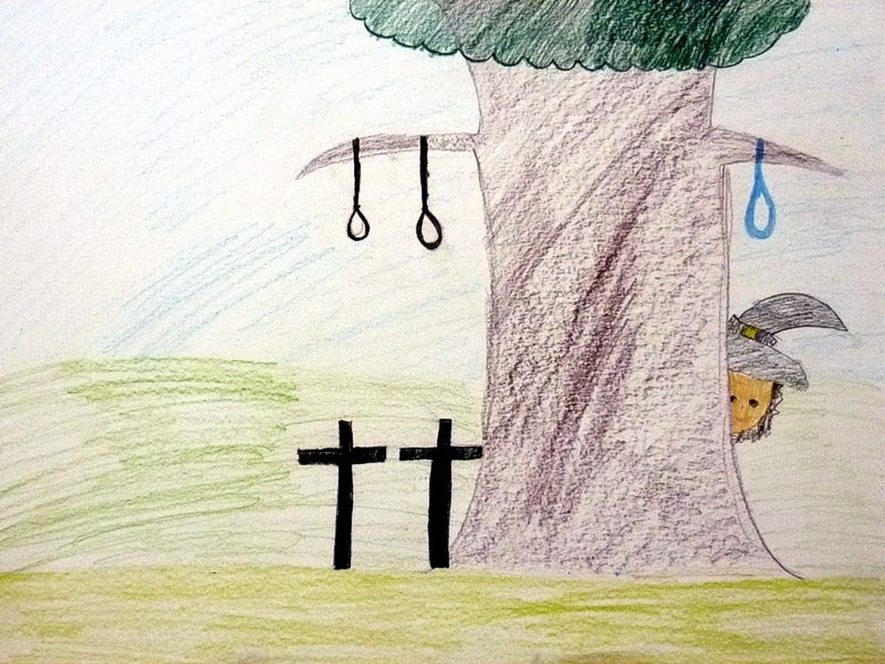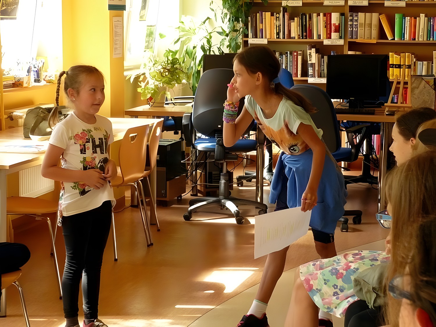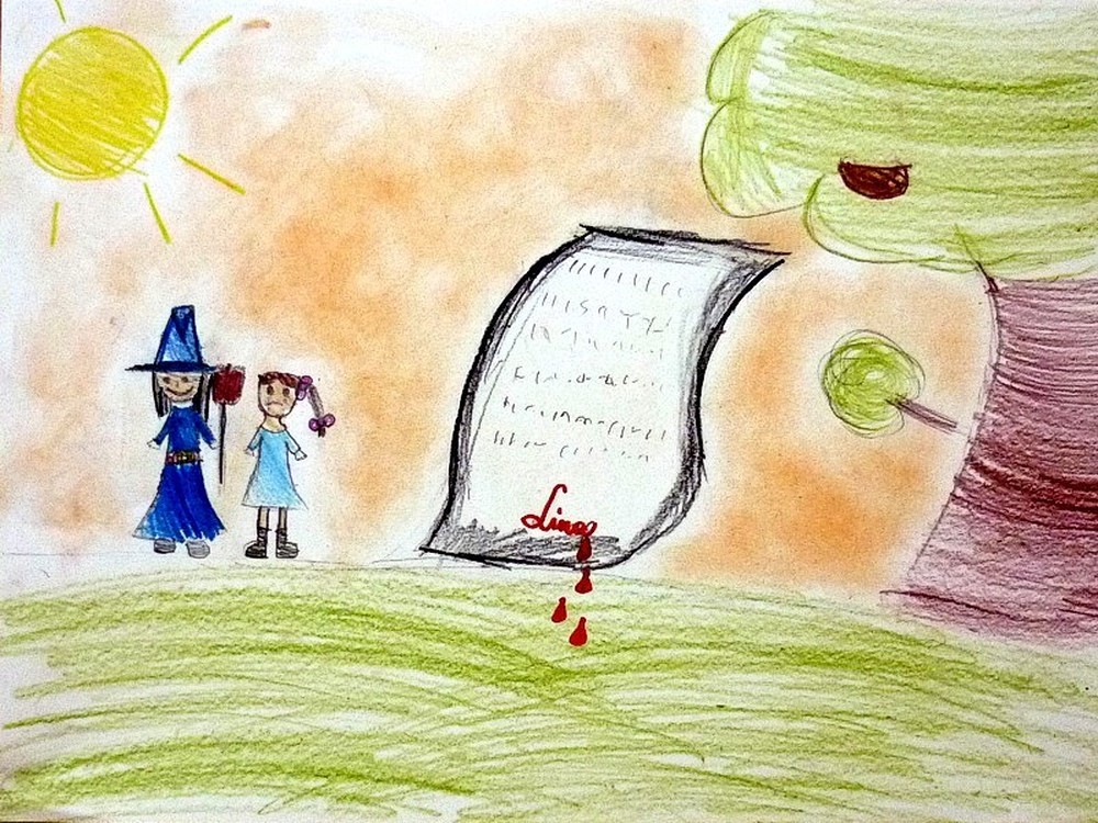 Dzień zakończyliśmy ambitnie, tworząc ilustracje do legendy o córce koszalińskiego kata, którą wystawimy w teatrzyku Kamishibai.