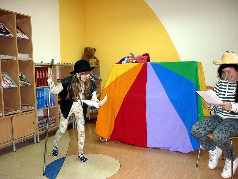 W dniu 21 marca spotkaliśmy się z naszymi MOLIKAMI i rozmawialiśmy o trudnym i pełnym wyrzeczeń zawodzie aktora. Ćwiczyliśmy dykcję i ruch sceniczny, a w finale wystawiliśmy aż trzy "sztuki dramatyczne", w tym jedną z udziałem pacynek. Tak się przy tym świetnie bawiliśmy, że o całym warsztacie aktorskim zapomnieliśmy.