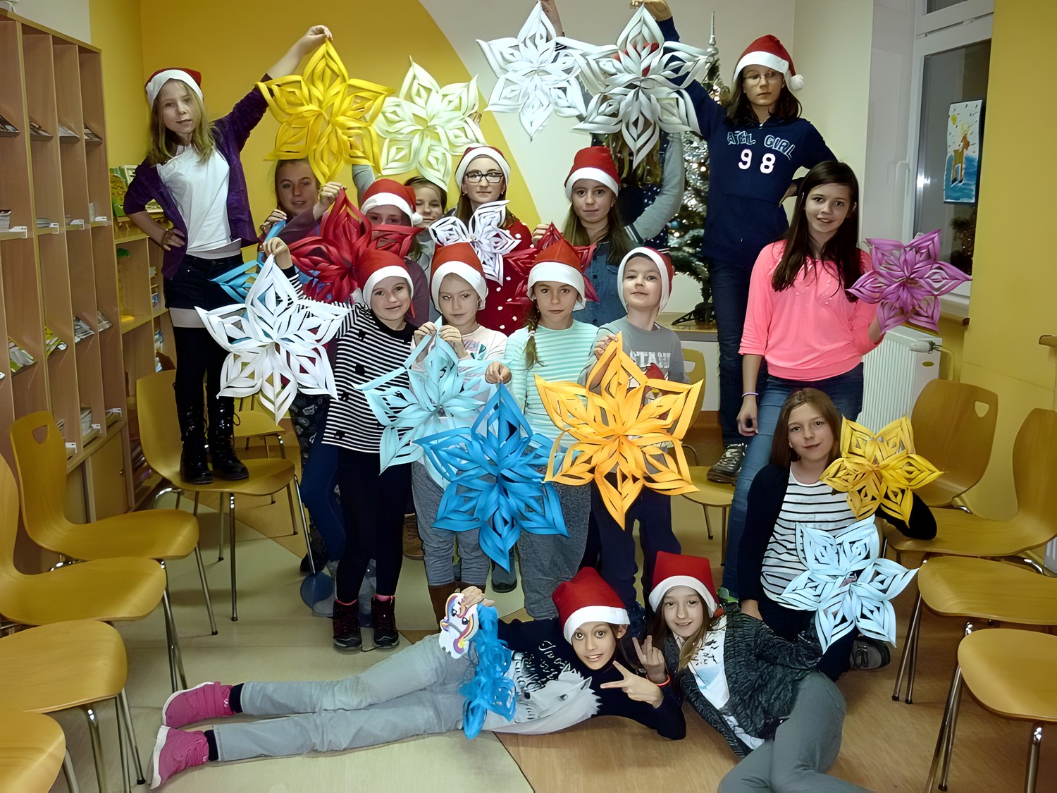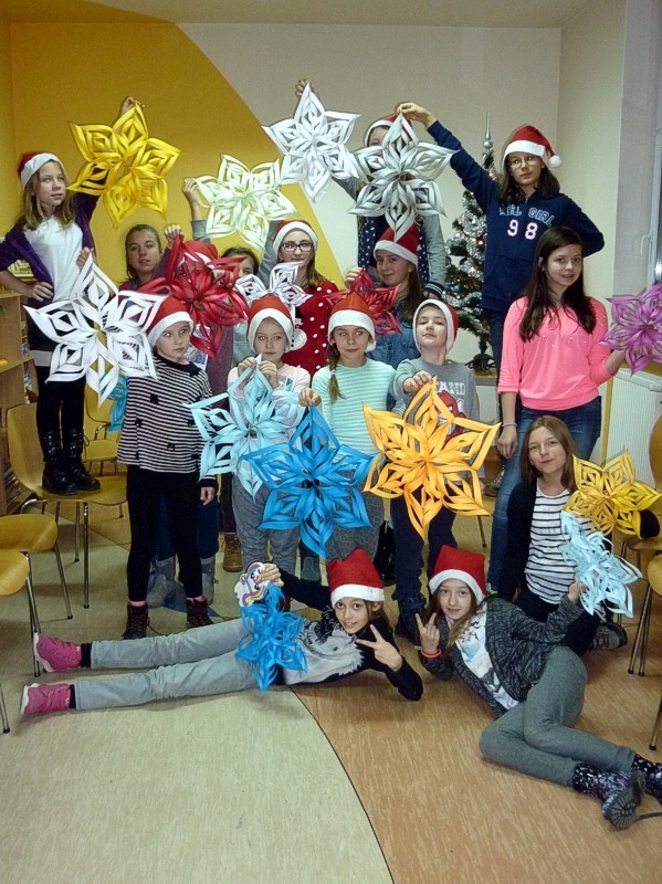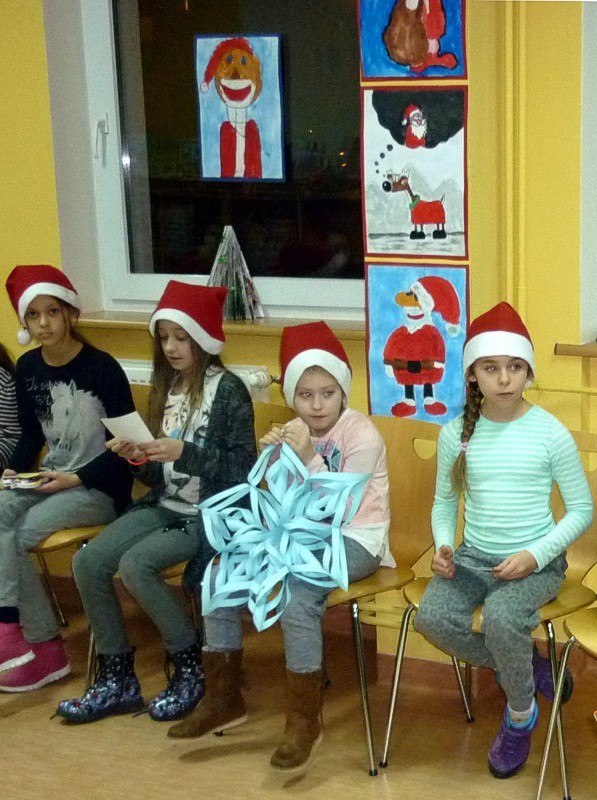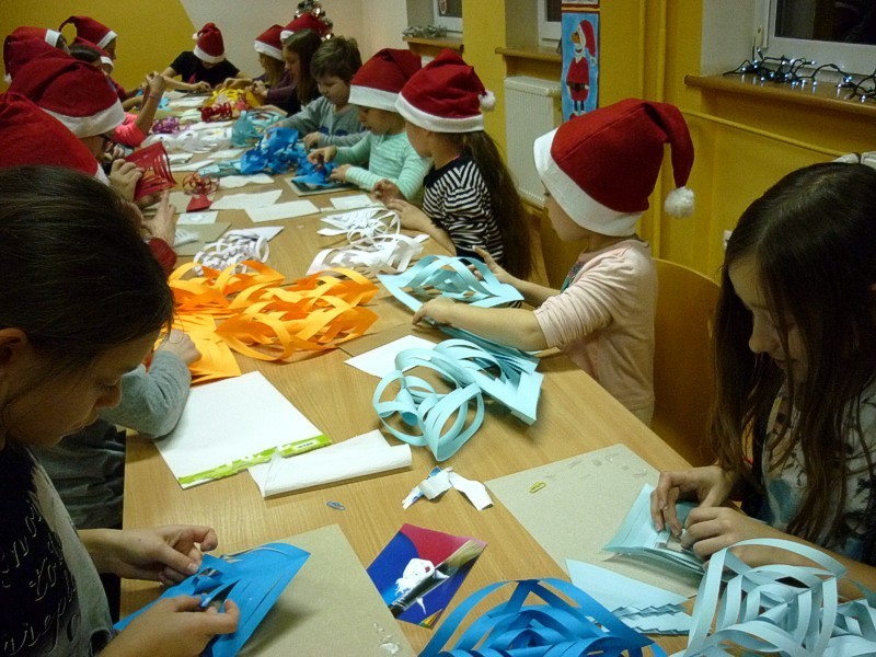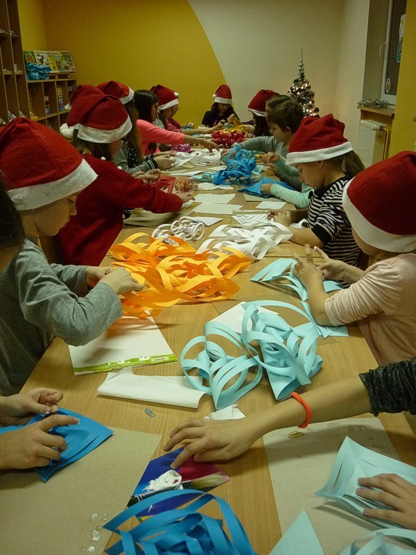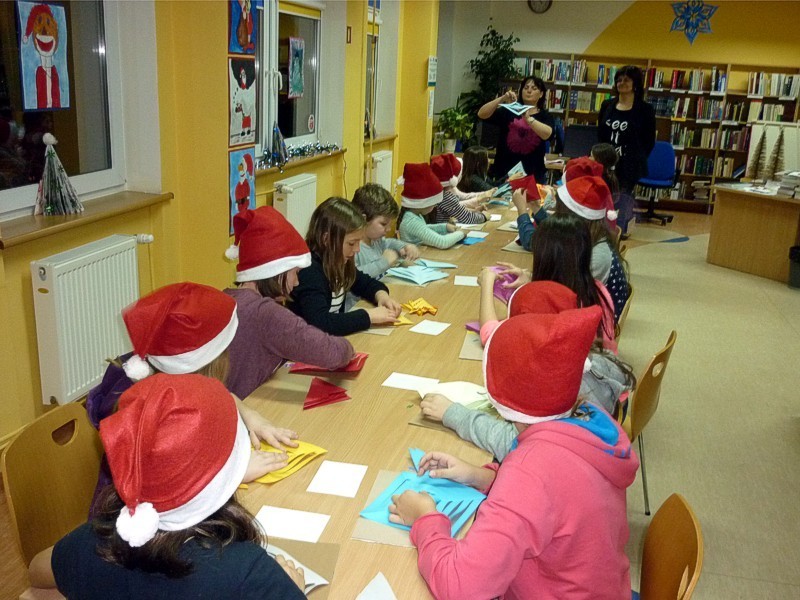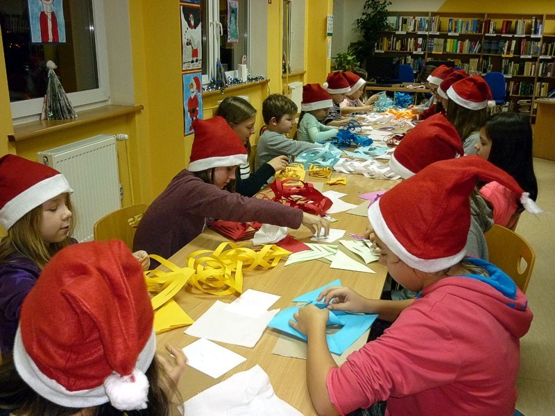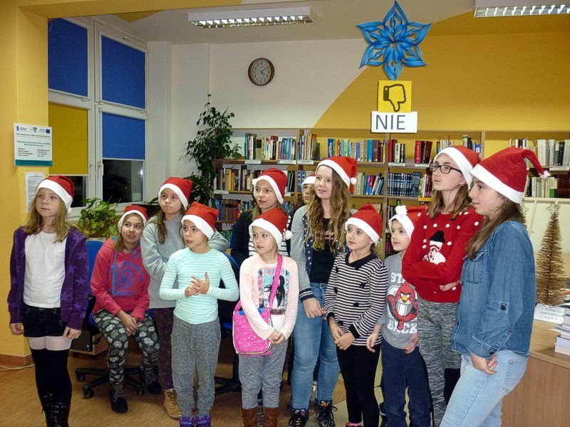 W piątek 9 grudnia - po raz ostatni w tym roku - spotkałyśmy się z naszymi MOLIKAMI. W wypożyczalni kusiła wystawka świątecznych książek, w czytelni choinki i mikołajkowe dekoracje okien sprawiły, że atmosfera spotkania była wyjątkowa. Zabawy: zaprzęg Św. Mikołaja, test kominowy oraz łowca prezentów tak zmęczyły nasze MOLE, że z chęcią zasiadły do prac plastycznych i stworzyły piękne świąteczne gwiazdy.