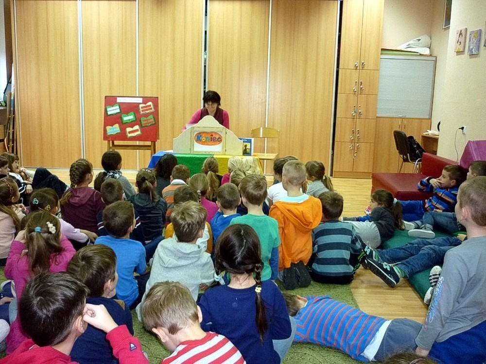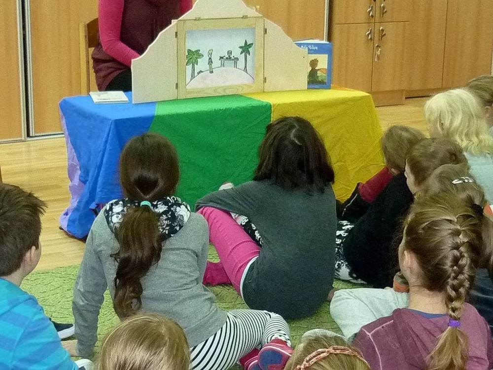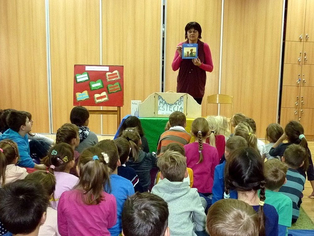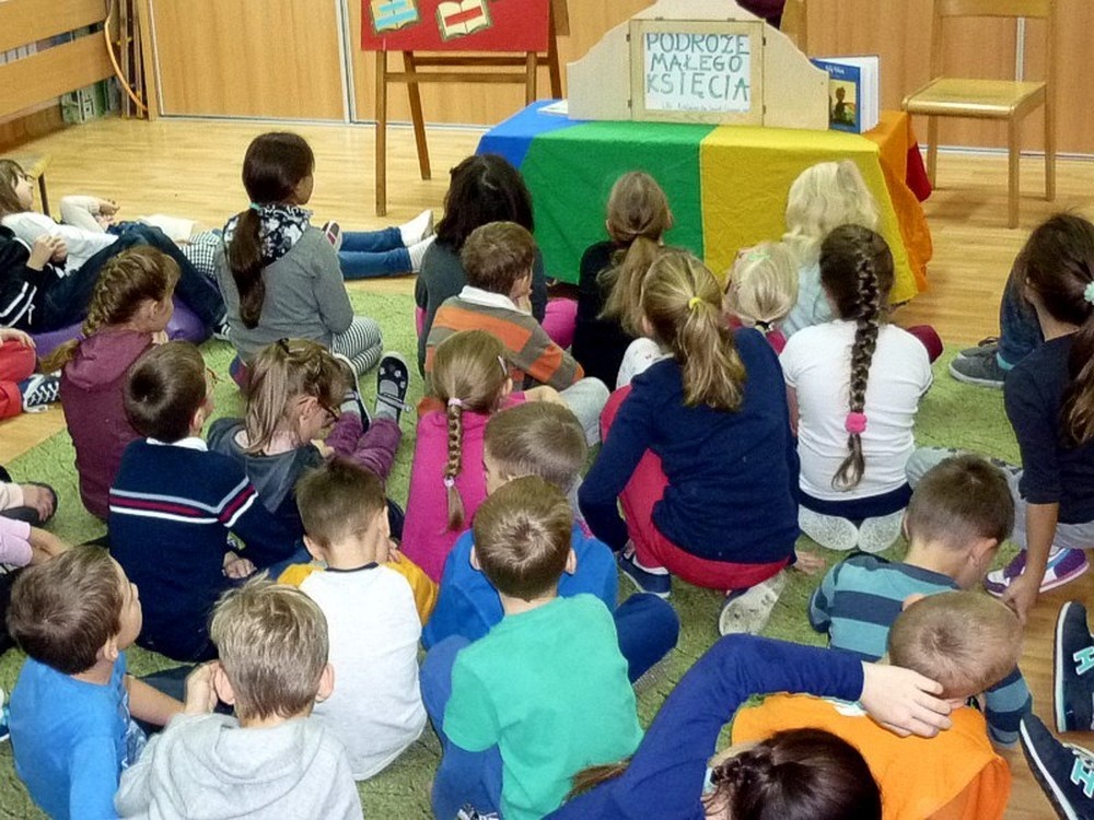 Dnia 24 listopada - zaopatrzone w drewnianą skrzynkę - wybrałyśmy się do Szkoły Podstawowej nr 18 w Koszalinie, by wziąć udział w akcji "CAŁA POLSKA CZYTA DZIECIOM". Publiczność (licznie zgromadzona w świetlicy szkolnej) obejrzała "MAŁEGO KSIĘCIA" wg Antoine'a de Saint-Exupery'ego. Niecodzienny występ zrobił na dzieciach duże wrażenie - zostałyśmy nagrodzone brawami i pięknymi podziękowaniami. Warto dodać, że ilustracje do tej ponadczasowej baśni, wykonali nastoletni uczestnicy tegorocznych "Wakacji w bibliotece".