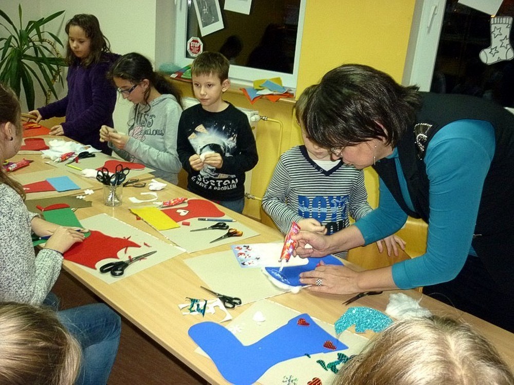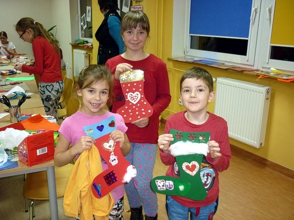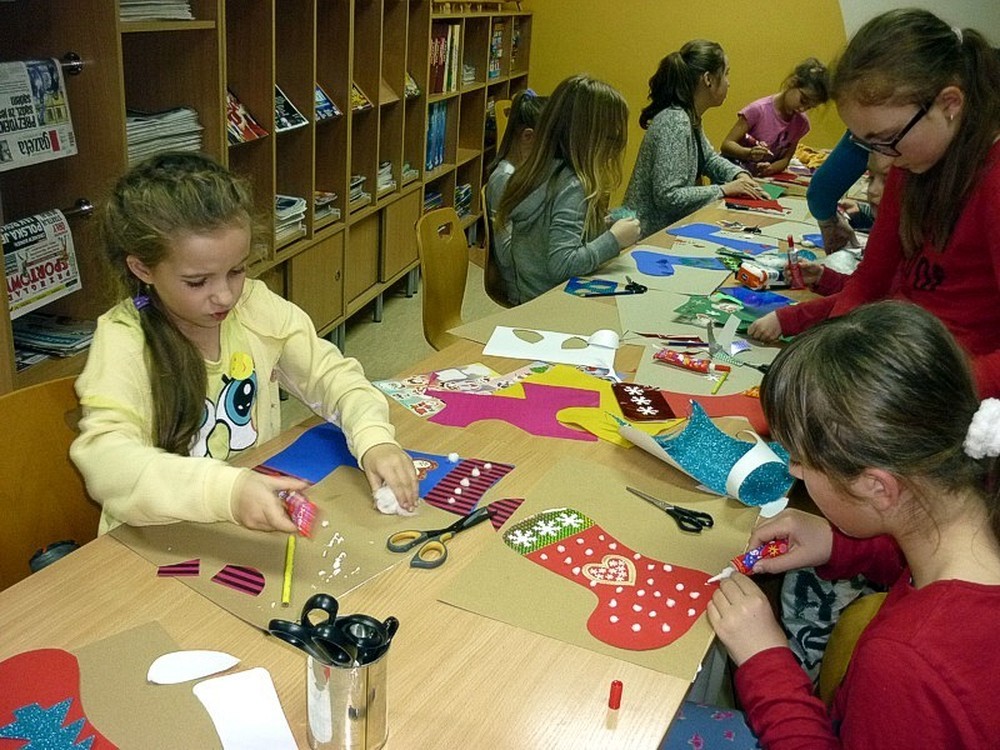 A ponieważ zbliżają się Mikołajki, postanowiliśmy przygotować też nową, świąteczną dekorację biblioteki.