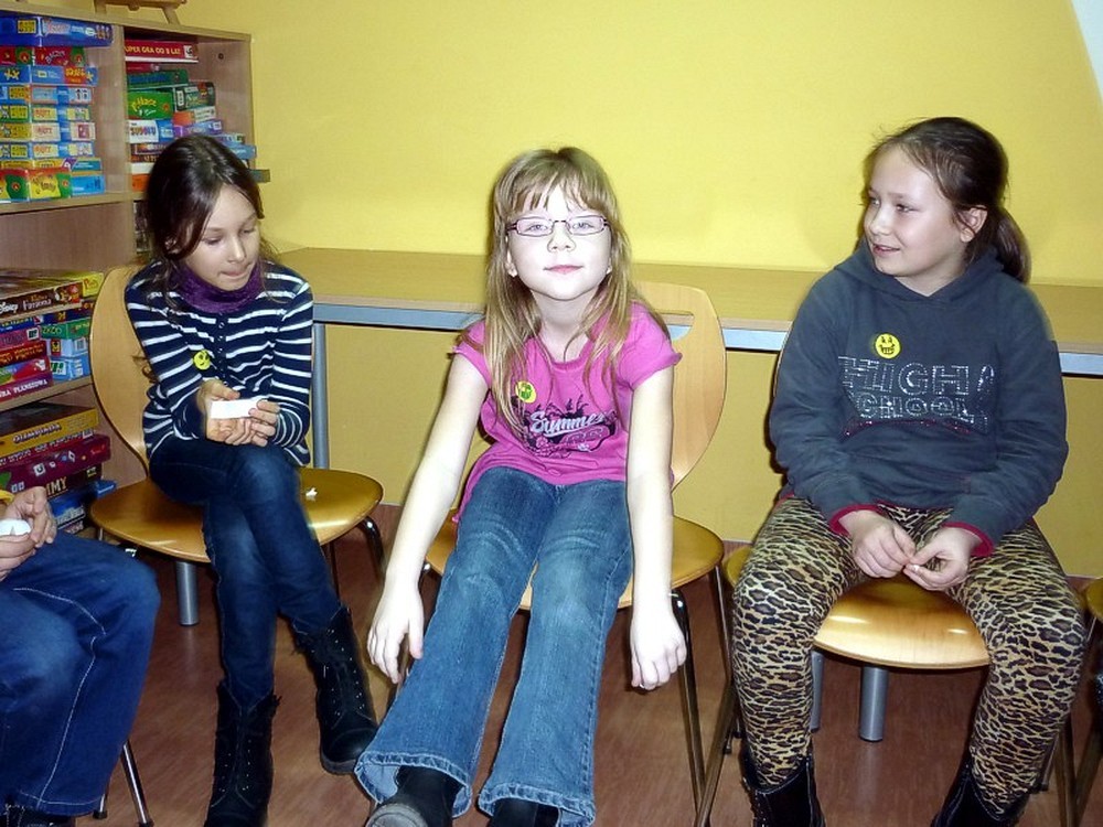 W mroźny wieczór, 17 stycznia, odbyło się pierwsze w tym roku spotkanie molików książkowych. Tym razem rozmawialiśmy o emocjach, jakie towarzyszą nam każdego dnia. Okazuje się, że najtrudniej opowiada się o emocjach takich jak: złość, radość, miłość, smutek, rozczarowanie, itd. Moliki zapoznały się z bogatą ofertą książek, które pomagają w rozwijaniu psychicznych możliwości dzieci i chronią je od wielu niepotrzebnych cierpień czy nieporozumień. Całkiem nieźle poszło nam z nazywaniem uczuć i przedstawianiem ich w formie plastycznej.