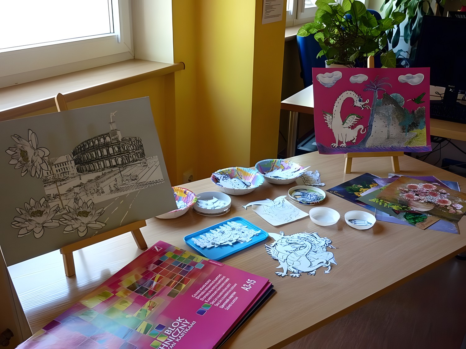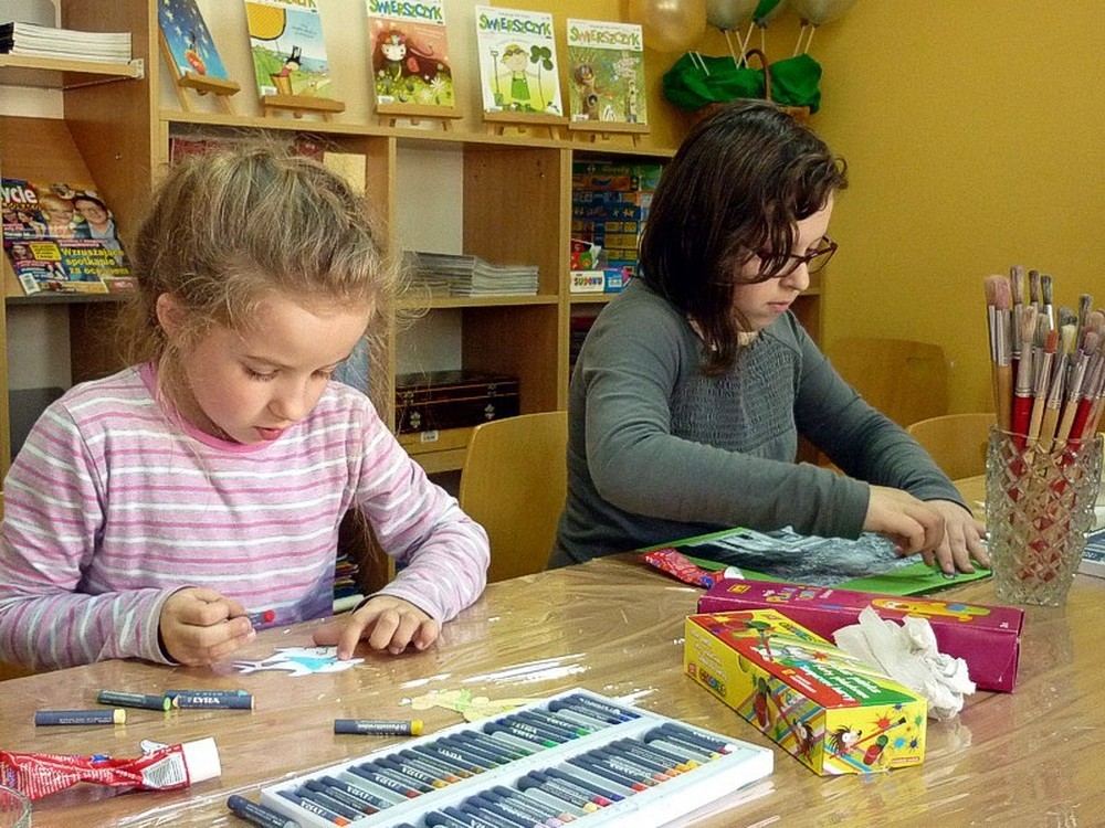Efektem zajęć jest przepiękna wystawa prac, którą można podziwiać w naszej czytelni.