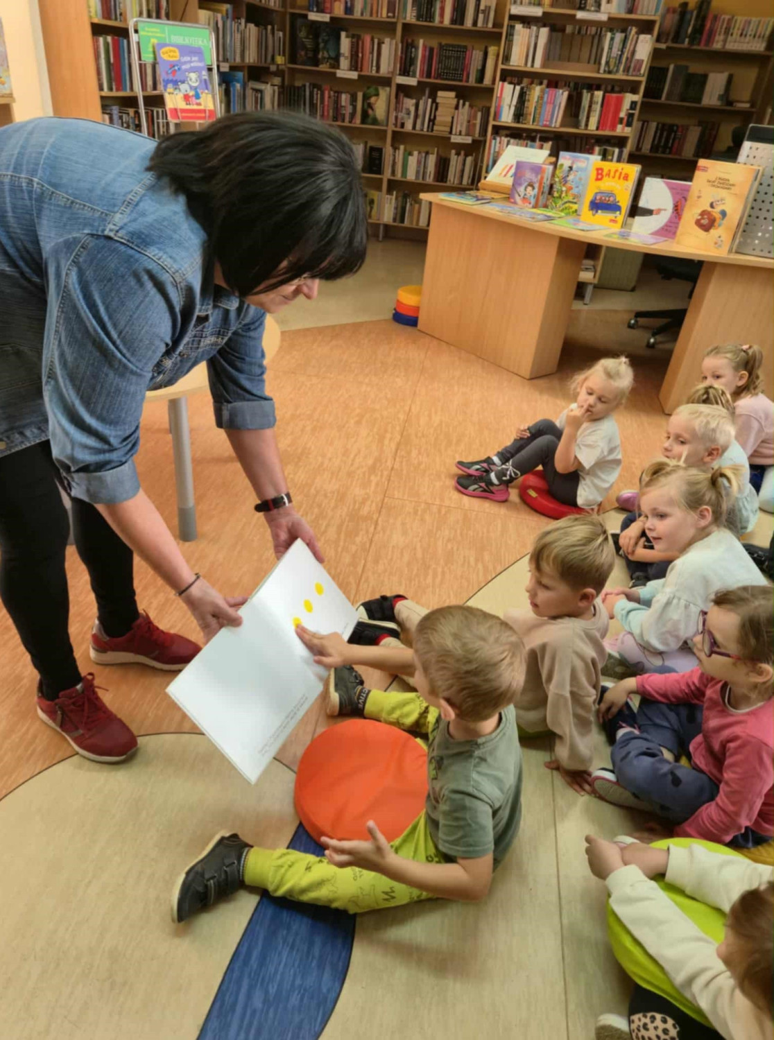 Dziś w naszej bibliotece wylądowały Żabki z Przedszkola nr 15. Najpierw razem z Wiolą naciskały, dmuchały i przewracały książkę H. Tulleta pt. NACIŚNIJ MNIE, potem pakowały wspólnie walizkę, a na koniec poleciały w podróż samolotem. Na niby... ale turbulencje były. Było głośno, wesoło i jeszcze wakacyjnie - jakoś ciężko się pogodzić z pożegnaniem lata.