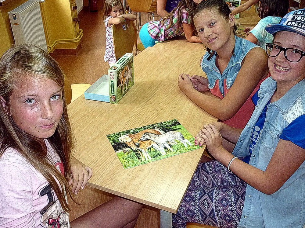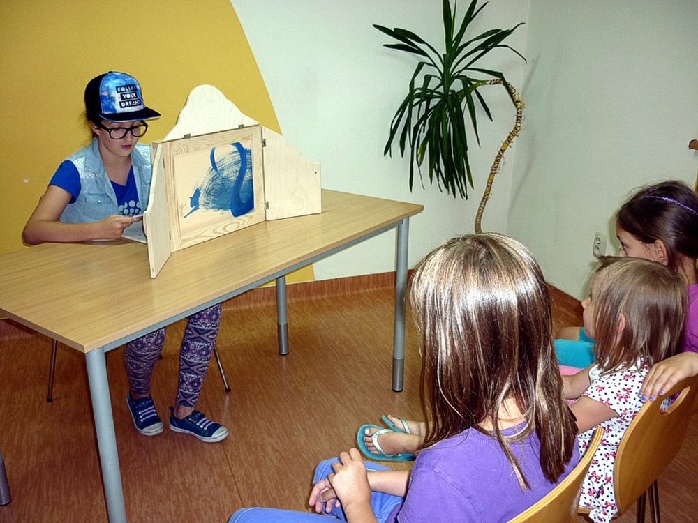 We wtorek 12 sierpnia odbyło sie kolejne wakacyjne spotkanie molików. Na rozgrzewkę przeprowadziliśmy mini-turniej w układaniu puzzli, następnie w teatrzyku KAMISHIBAI starsze koleżanki przedstawiły młodszym dwie sztuki. Na zakończenie wykonaliśmy po kilka różnorodnych zakładek do książki. Było kolorowo!