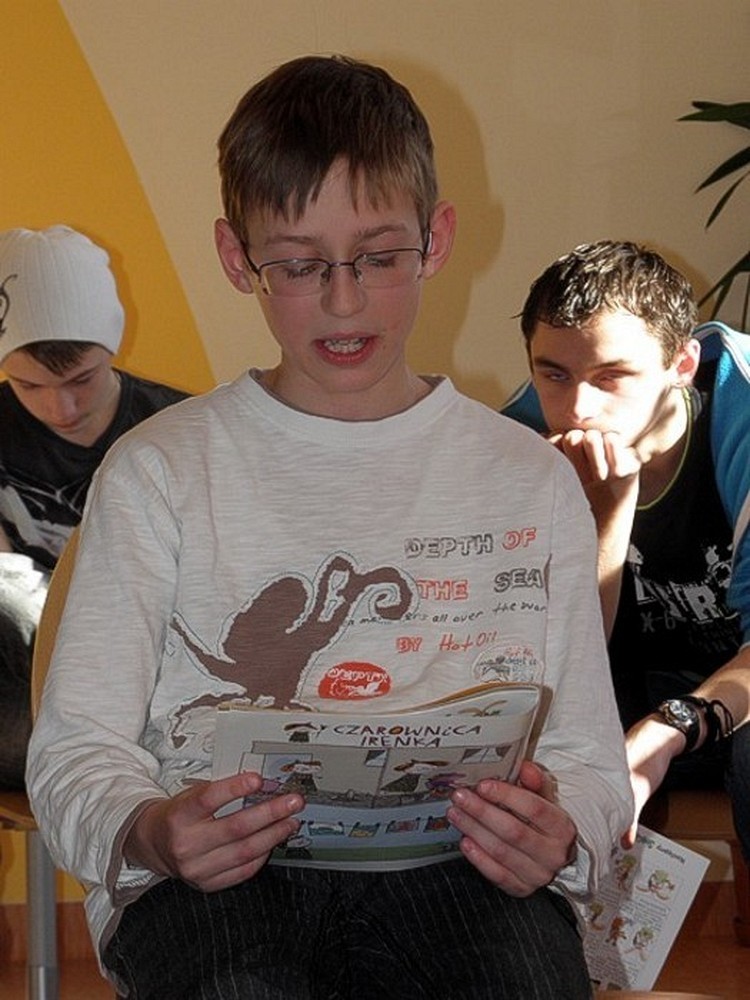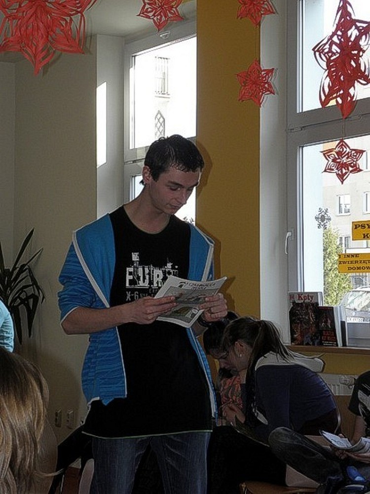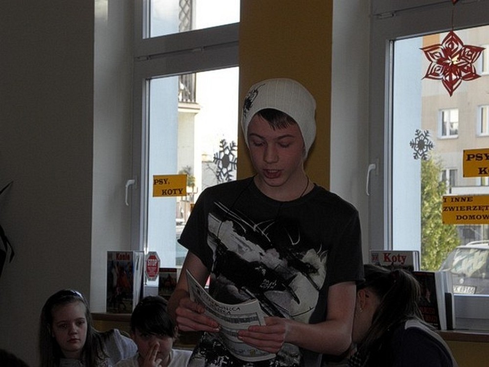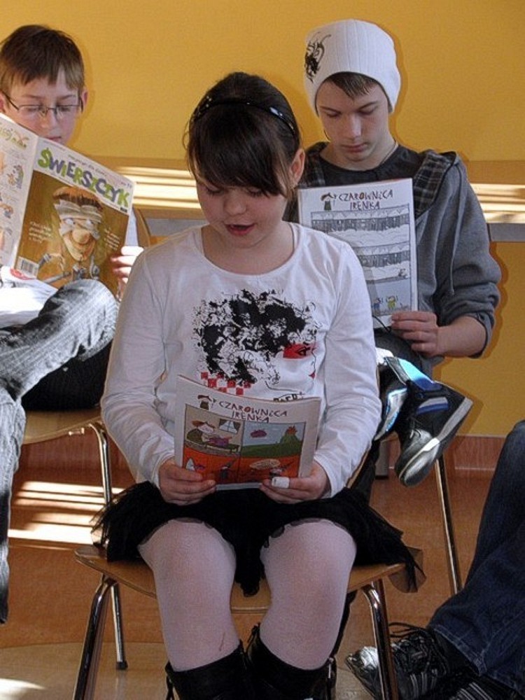 Jeśli ktoś myśli, że dzieci i młodzież nie lubią czytać, jest w błędzie. W tym konkursie wzięło udział 21 uczestników ferii. Zadaniem każdego było przeczytać jeden wiersz ze "ŚWIERSZCZYKA", jednego z najbardziej wartościowych czasopism dla dzieci.